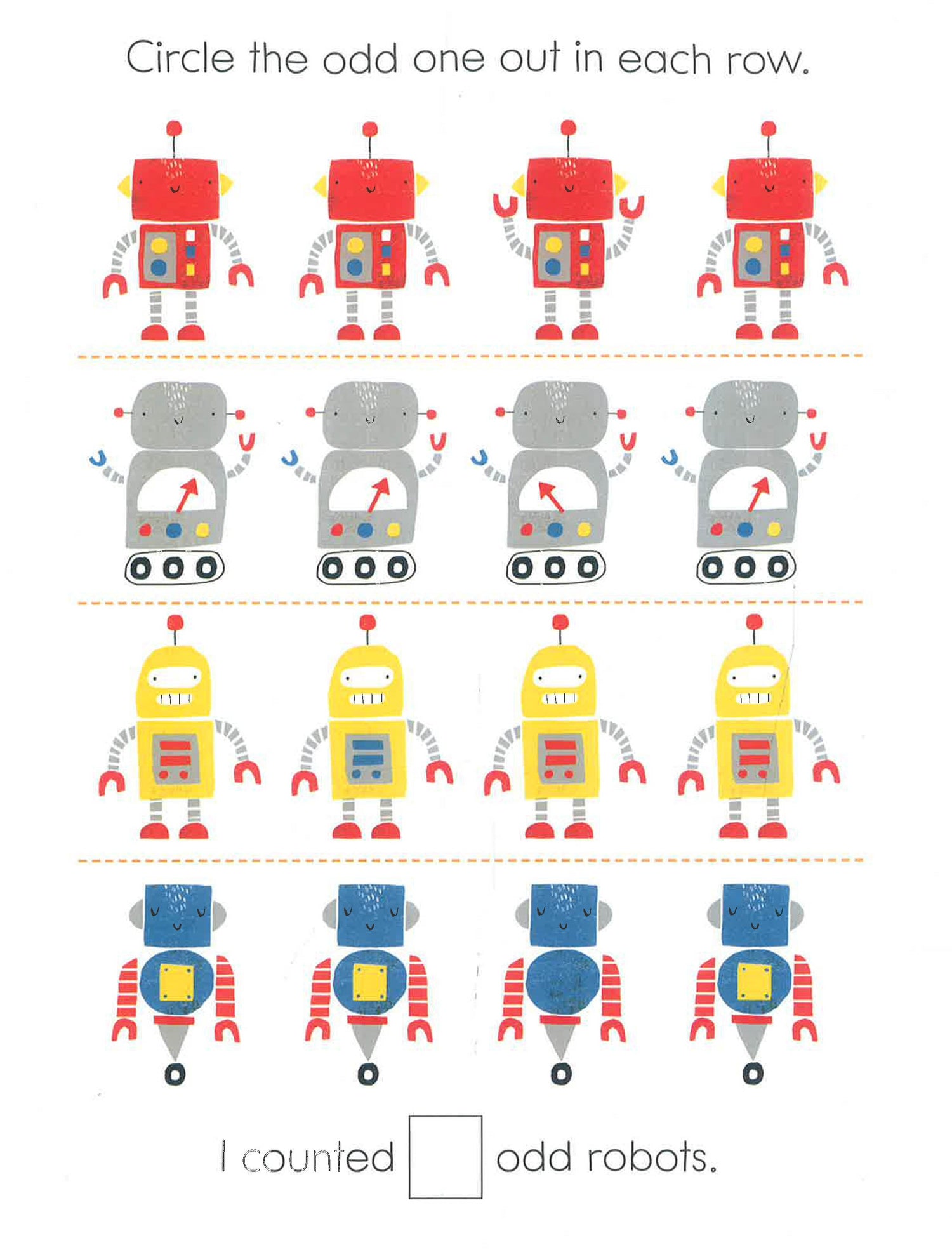 Which cow, chick, daisy, or balloon is the odd one out? Straightforward questions spur children on to solve puzzles while tracing over and connecting dotted guidelines helps them to complete each one. They can even color them in, too! Get them thinking, writing, counting, and laughing as they take on each intriguing challenge. This book offers hours of age-appropriate fun to kids that are just starting to enjoy thinking through problems and finding answers all by themselves. Help young readers practice visual thinking by solving simple puzzles.