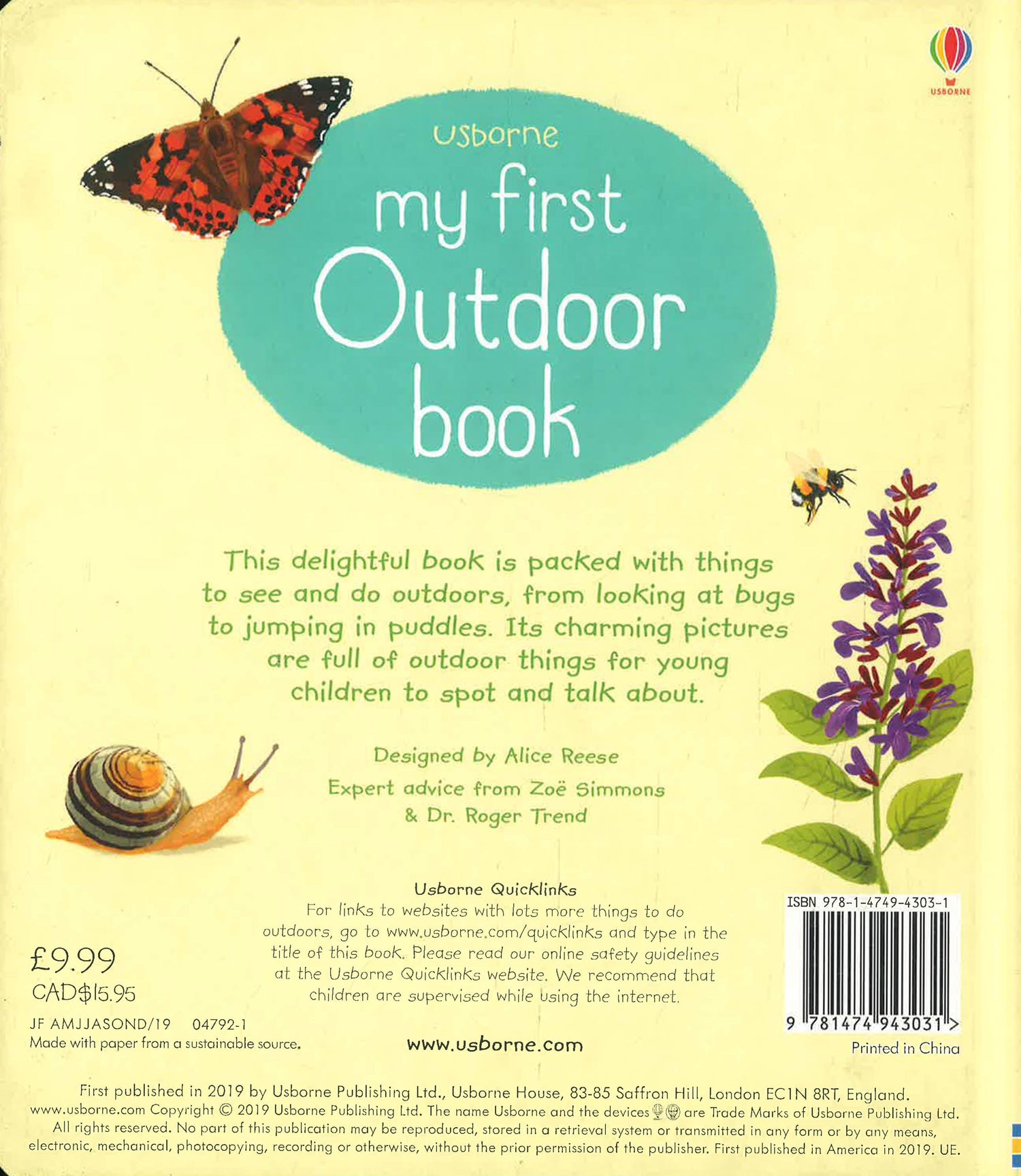 Discover lots of interesting things to see and do outdoors in this lovely book for grown-ups and children to share. Learn about beachcombing, animal tracking and stargazing, meet lots of birds, bugs and plants, and find advice for children on how to take care when they're out and about. With website links for even more outdoor activities.