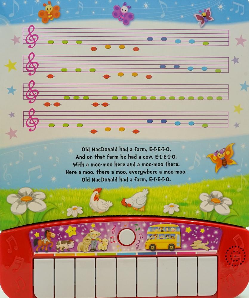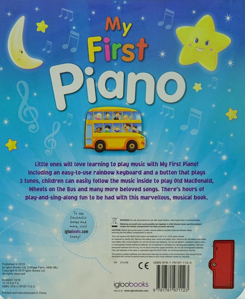 Little ones will love learning to play music with My First Piano!Including an easy-to-use rainbow keyboard and a button that plays 3 tunes,children can easily follow the music inside to play Old MacDonald, Wheels on the Bus and many more beloved songs.There's hour of play-and-sing-along fun to be had with this marvellous,music book.