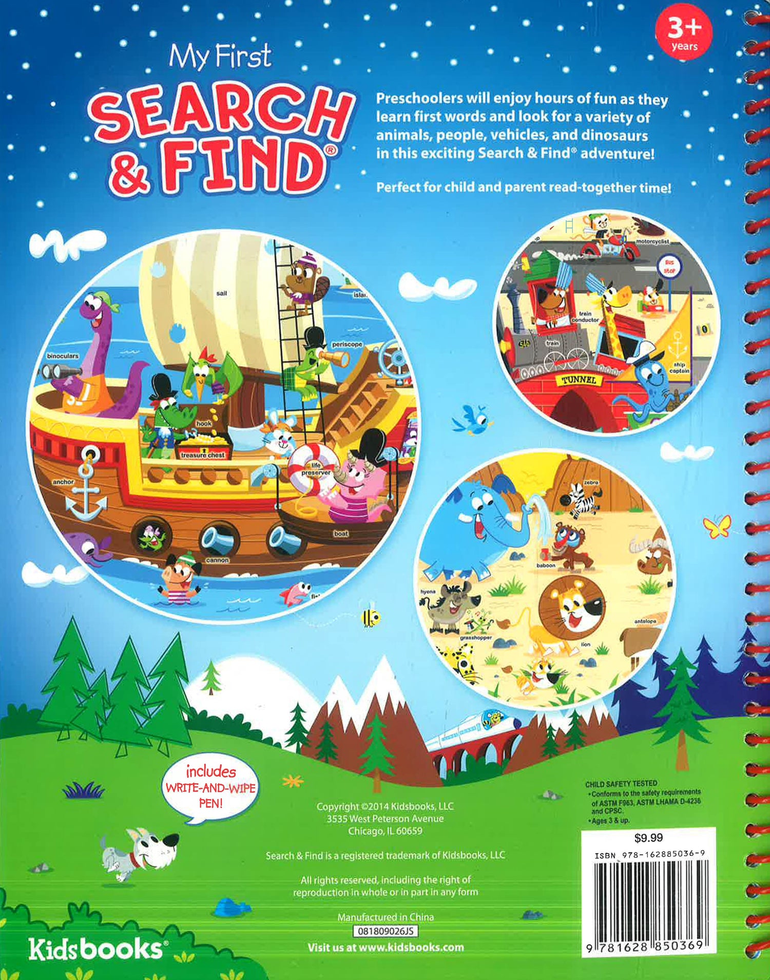 Preschoolers will enjoy hours of fun as they learn first words and look for a variety of animals, people, vehicles, and dinosaurs in this exciting Search & Find adventure! Includes write-and-wipe pen!
