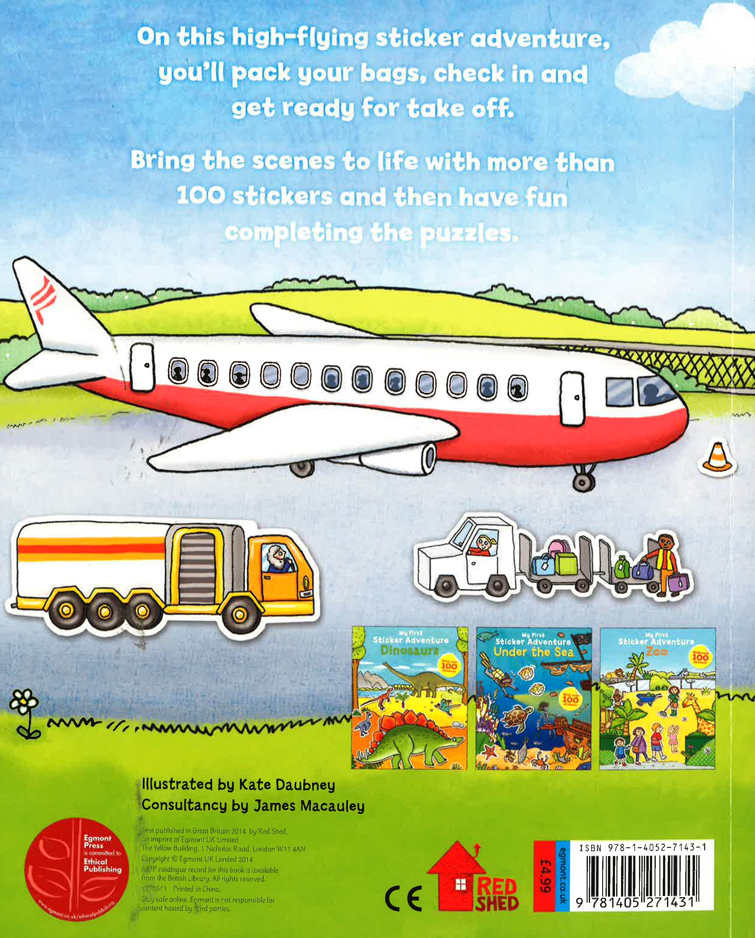My First Sticker Books are a great way to introduce kids to new ideas while encouraging creativity with the 100 stickers. Kids can learn all about life inside an airport. They can pack their bags, ride the shuttle bus, check in, and go through security. They can complete each scene with the stickers provided. There are mazes, spot-the-differences, search and find games and much much more. The stickers are also labelled to help build vocabulary. The content has been checked for accuracy by pilot James Macauley. Ideal for kids aged 3 and up. Have you collected all the My First Sticker Adventures? My First Sticker Adventure Zoo; My First Sticker Adventure Airport; My First Sticker Adventure Under the Sea; My First Sticker Adventure Dinosaur. Kate Daubney lives by the sea in North Devon, England with her partner Roger and her scruffy sidekick, Taz the dog. After graduating with a degree in illustration, she has worked on numerous children's books, using both digital and traditional media to create her colourful and quirky illustrations. When she's not busy illustrating she loves nothing more than riding her bike or taking a walk across the local beach, where Taz the dog enjoys chasing the seagulls!