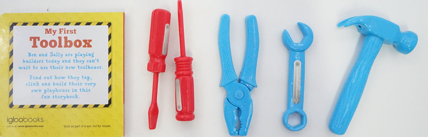 My First Toolbox Join in the playtime fun with this brilliant builder's toolbox. With 5 fantastic tools and a fun storybook, little builders will love tapping, clinking and clunking with this great first play set.