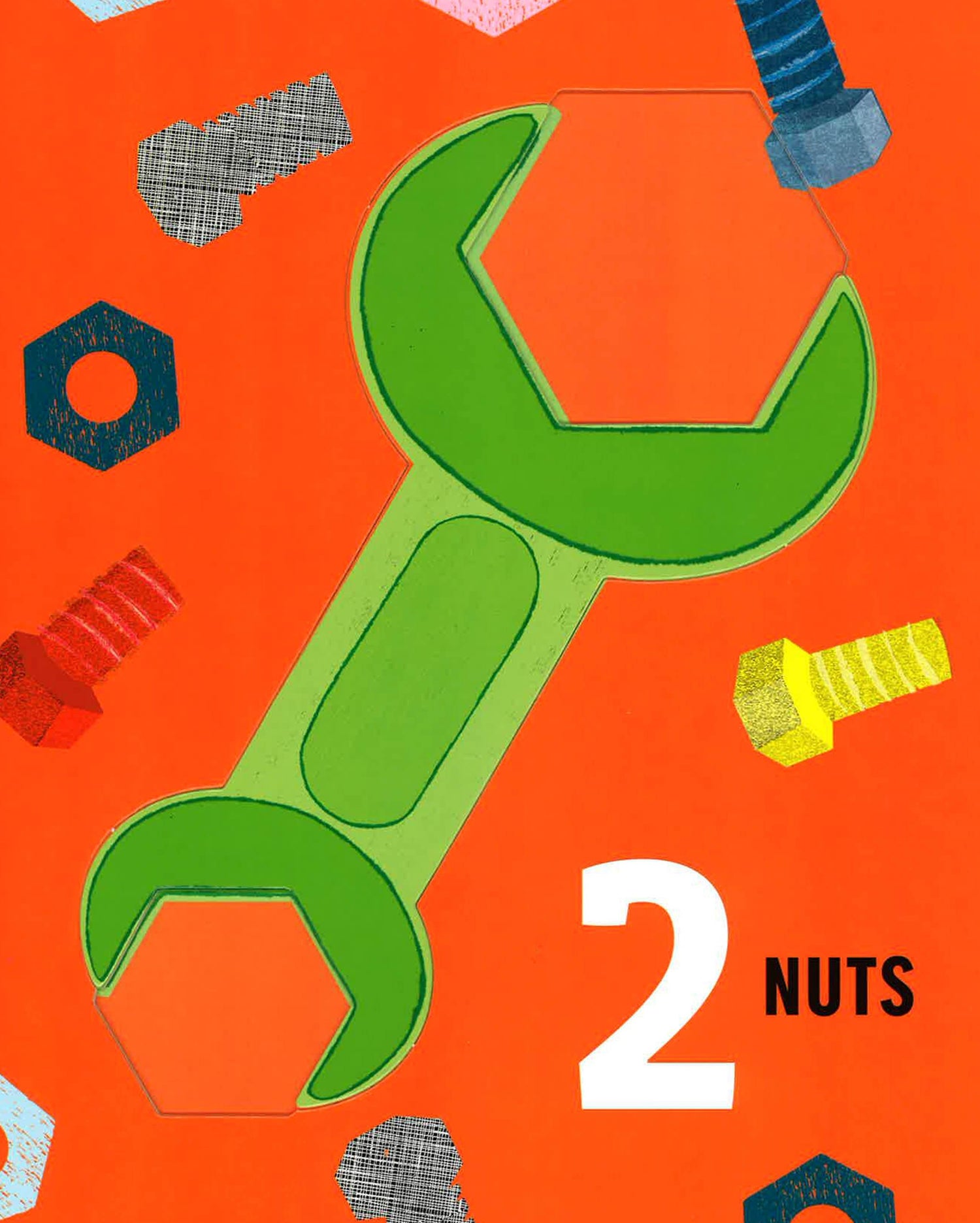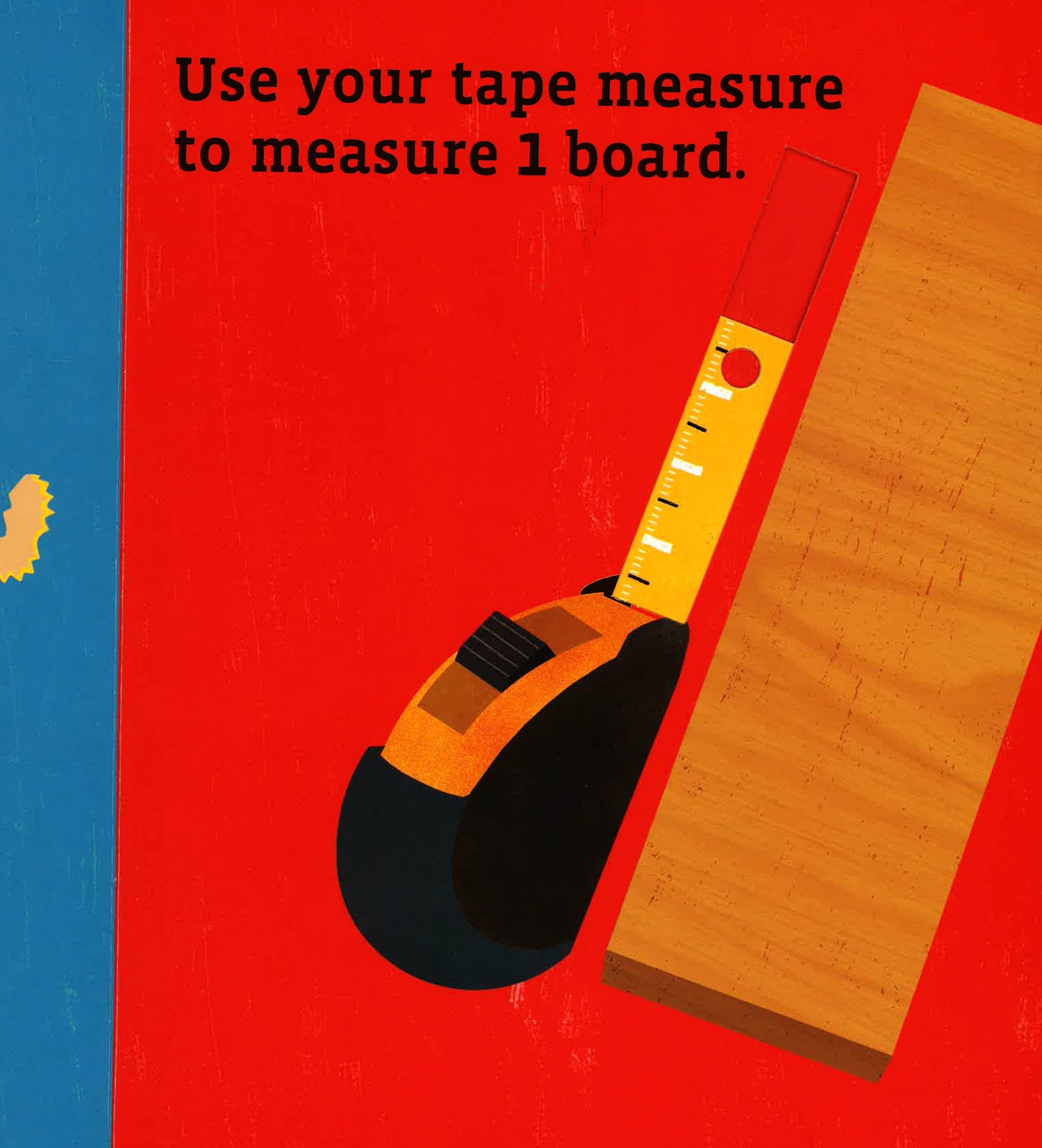My First Tool Box also features a tape measure to slide, and screws and nuts to turn.