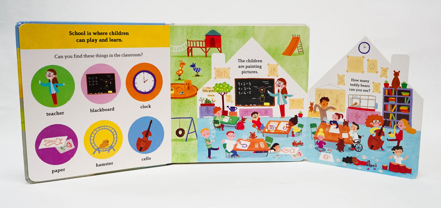 This colourful, illustrated giant flap book is aimed at toddlers to help improve their observational and language skills by seeing inside buildings and discovering lots of things in the town. The large, shaped flaps are easy for toddlers to use and there is lots to search for and find in the bright colourful illustrations. There is lots of life-and-learn fun on every spread, with a big gatefold flap to open to see inside each building. Each double-page spread introduces a different ship or building and has colourful illustrations of characters and everyday objects inside.