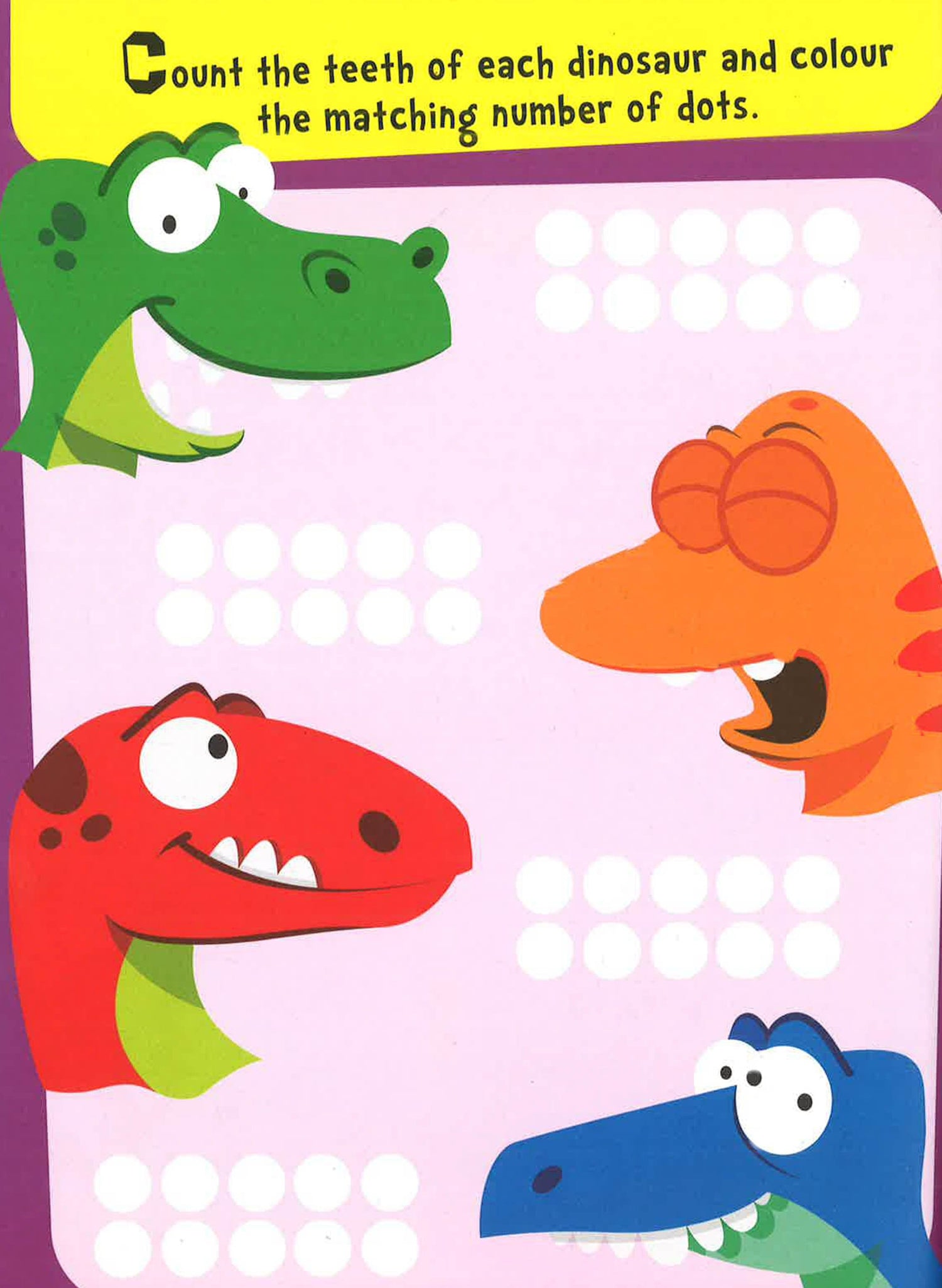 Your child will enjoy guiding dinosaurs through mazes, joining the dots, colouring and more.