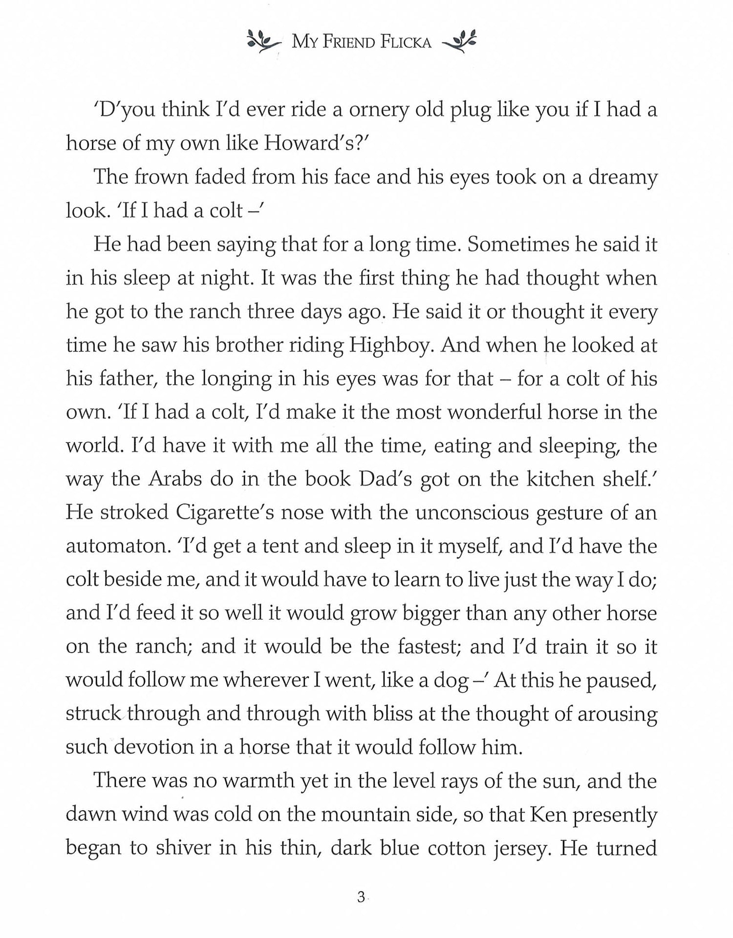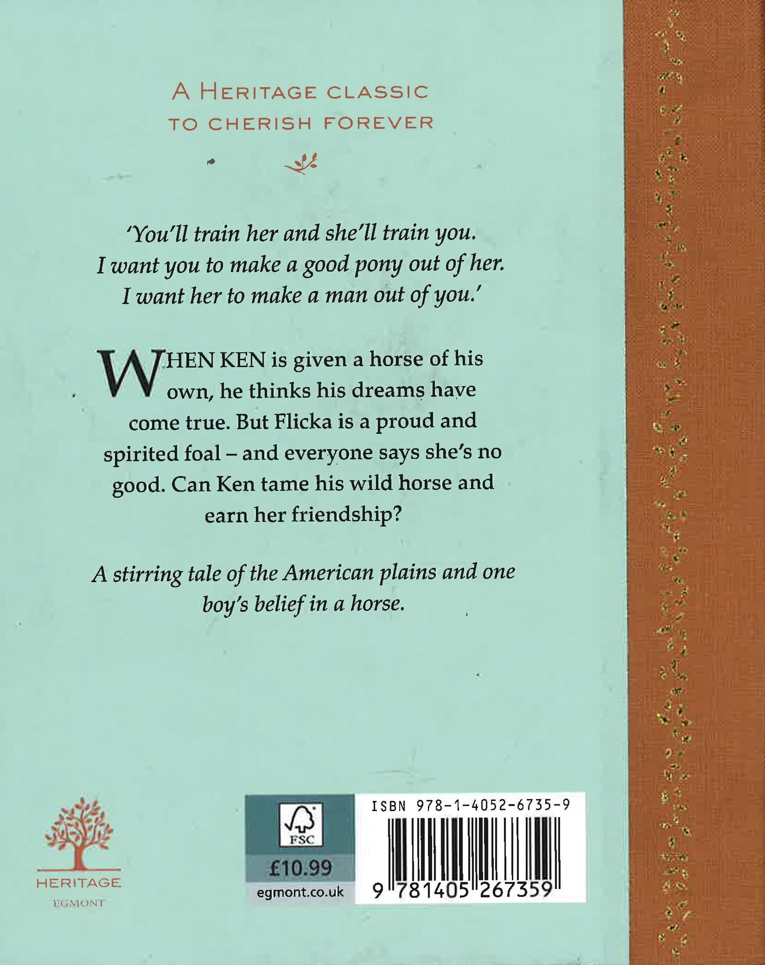 You'll train her and she'll train you. I want you to make a good pony out of her. I want her to make a man out of you.' When Ken is given a horse of his own, he thinks his dreams have come true. But Flicka is a proud and spirited foal - and everyone says she's no good. Can Ken tame his wild horse and earn her friendship?