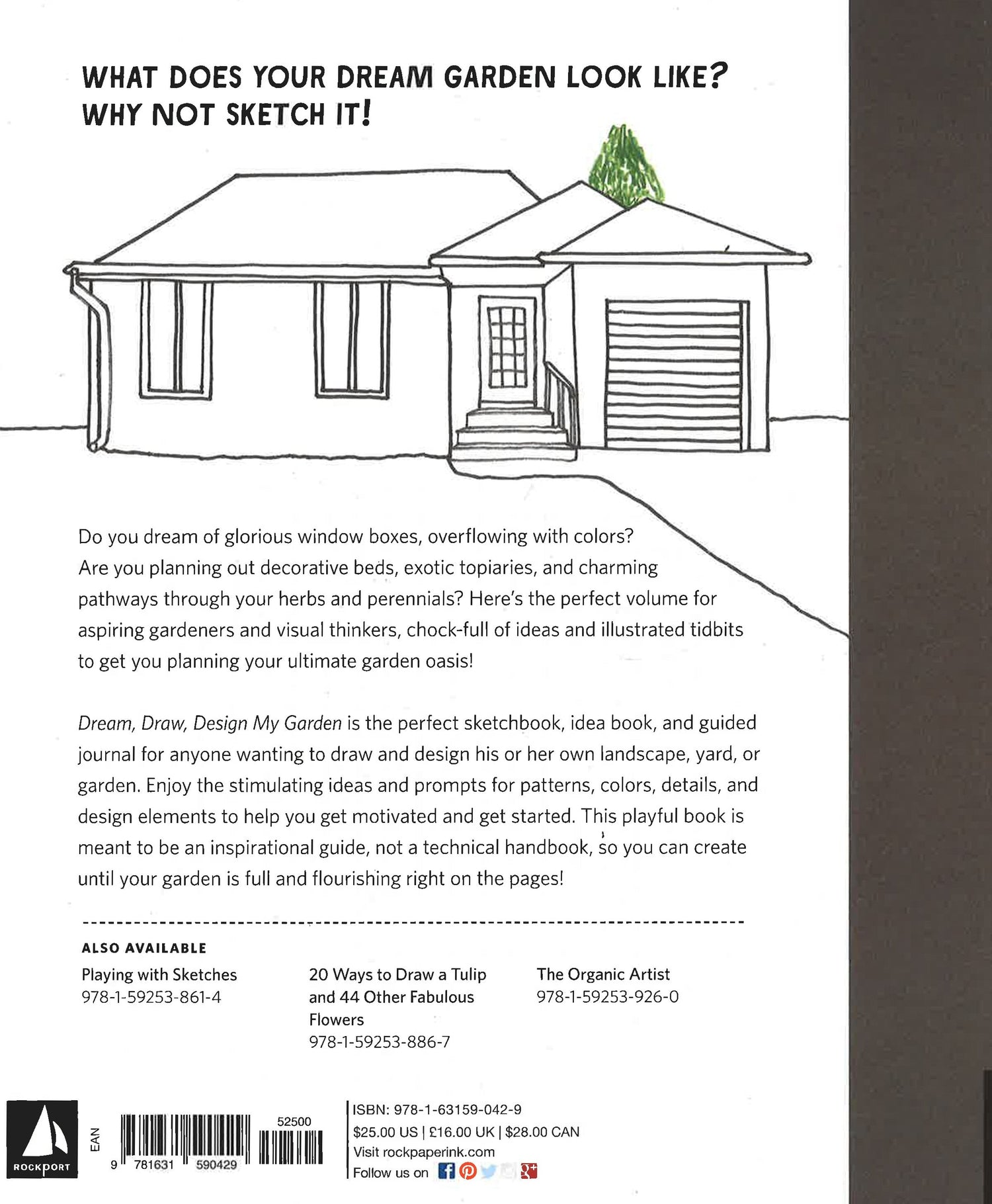 What does your dream garden look like? Why not sketch it! Dream, Draw, Design My Garden is the perfect inspirational sketchbook, idea book and guided journal for anyone wanting to draw and design their own landscape, yard, or garden! Enojy the stimulating ideas and prompts for patterns, colors, details and design elements to help dreamers get motivated and get started. This playful book is meant to be a visual guide, not a technical handbook, so you can create until your garden is full and flourishing righ on the pages! James Hobbs, whose quick sketching techniques were featured in The Art of Urban Sketching and the best selling Sketch Your World, will guide both experienced and amateur sketchers. The unfinished quality of his line drawings leave room for the reader to imagine how they would use it themselves, through different color interpretations or redrawing for their own purposes. Whether you dream of an English rose garden, a desert rock garden, or a beautiful pondscape, Dream, Draw, Design My Gardenwill let your creativity grow!