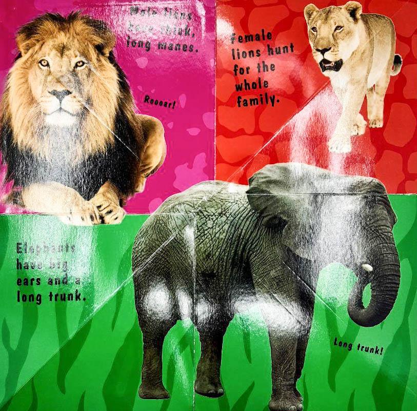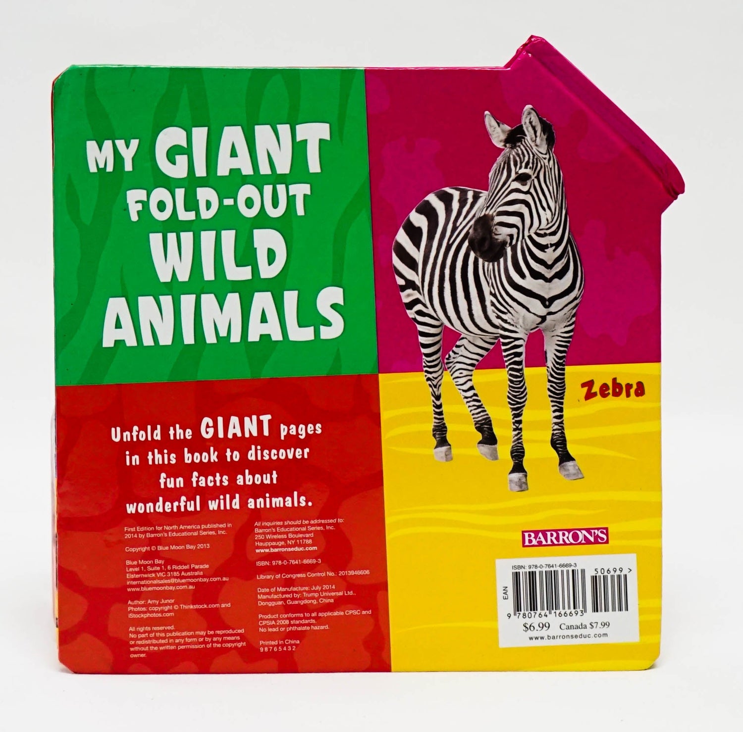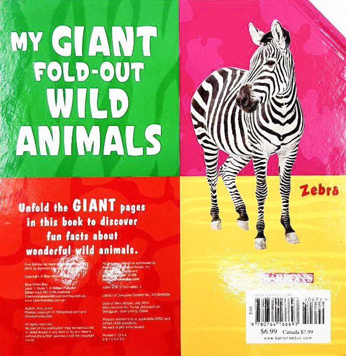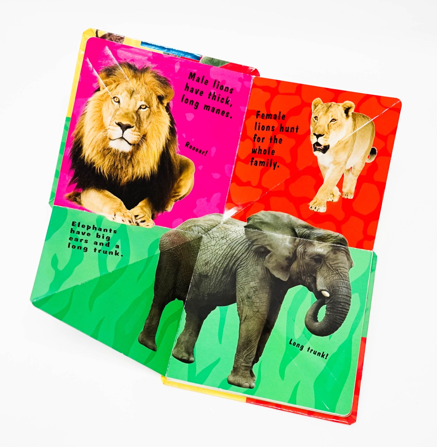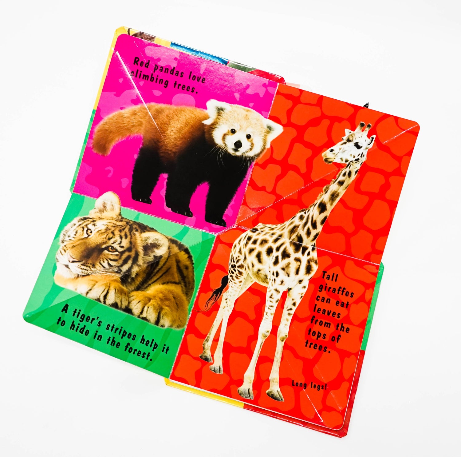 This sturdy board book features bold, bright colors and crisp photos that seem to pop right off the page. But the best surprise each page expands to a giant 13 " x 13 " sheet! In "Wild Animals," Little hands can unfold the pages to learn fun facts about wonderful wild animals.