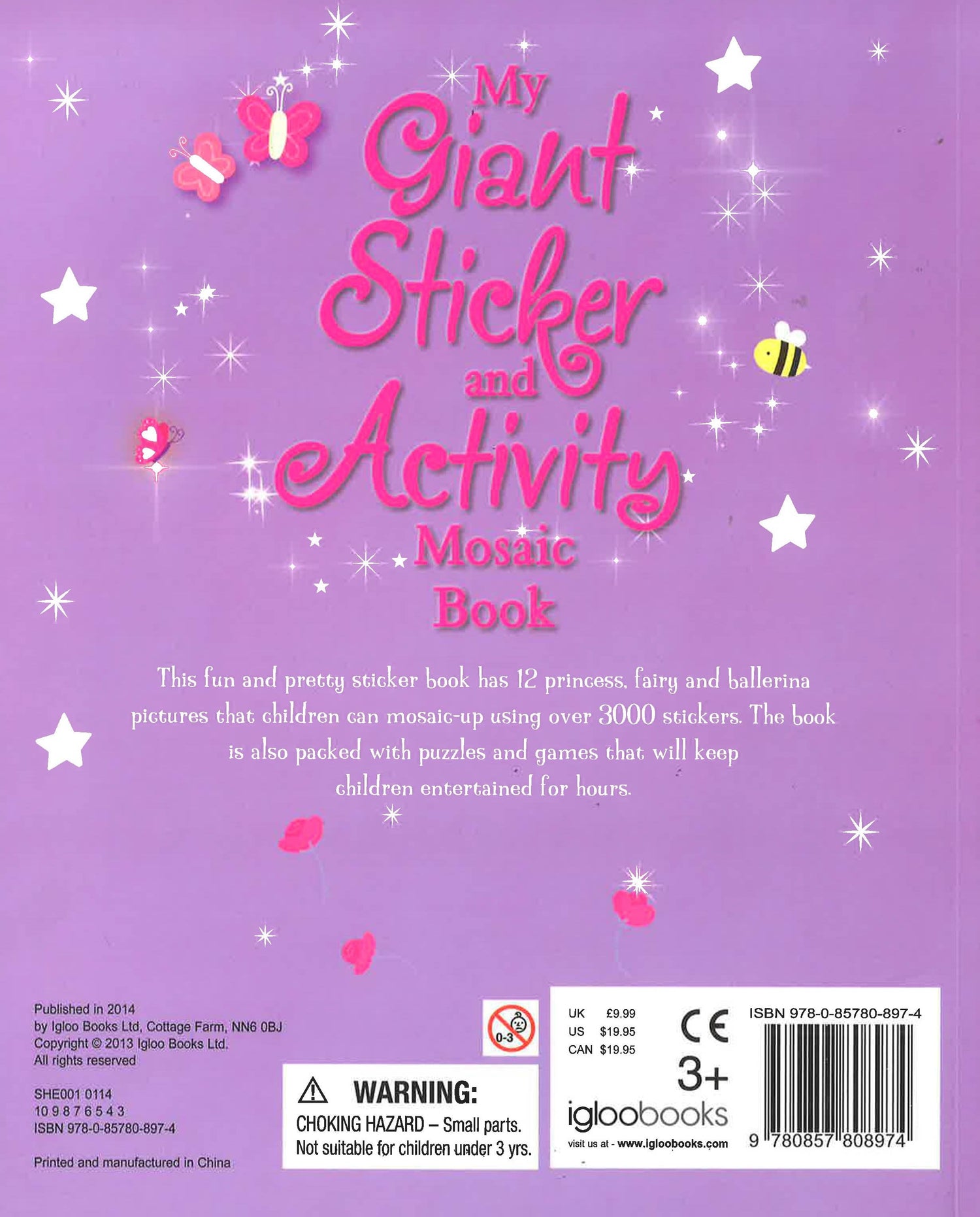 This fun and pretty sticker book has 12 princess, fairy and ballerina pictures that children can mosaic-up using over 3000 stickers. The book is also packed with puzzles and games that will keep children entertained for hours.