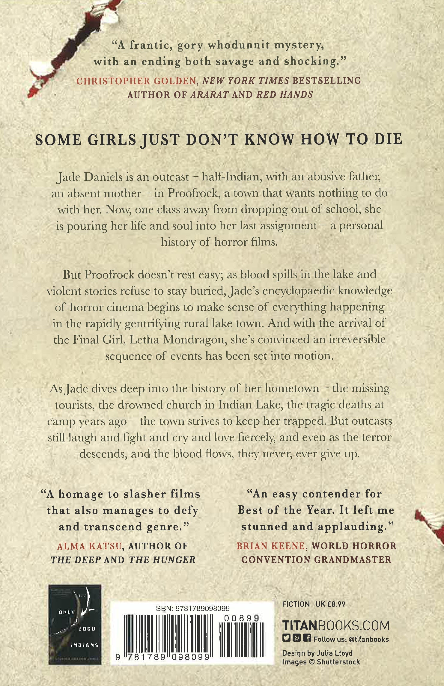 The Jordan Peele of horror fiction turns his eye to classic slasher films: Jade is one class away from graduating high-school, but that's one class she keeps failing local history. Dragged down by her past, her father and being an outsider, she's composing her epic essay series to save her high-school diploma. Jade's topic? The unifying theory of slasher films. In her rapidly gentrifying rural lake town, Jade sees the pattern in recent events that only her encyclopedic knowledge of horror cinema could have prepared her for. And with the arrival of the Final Girl, Letha Mondragon, she's convinced an irreversible sequence of events has been set into motion. As tourists start to go missing, and the tension grows between her community and the celebrity newcomers building their mansions the other side of the Indian Lake, Jade prepares for the killer to rise. She dives deep into the town's history, the tragic deaths than occurred at camp years ago, the missing tourists no one is even sure exist, and the murders starting to happen, searching for the answer. As the small and peaceful town heads towards catastrophe, it all must come to a head on 4th July, when the town all gathers on the water, where luxury yachts compete with canoes and inflatables, and the final showdown between rich and poor, past and present, townsfolk and celebrities slasher and Final Girl.