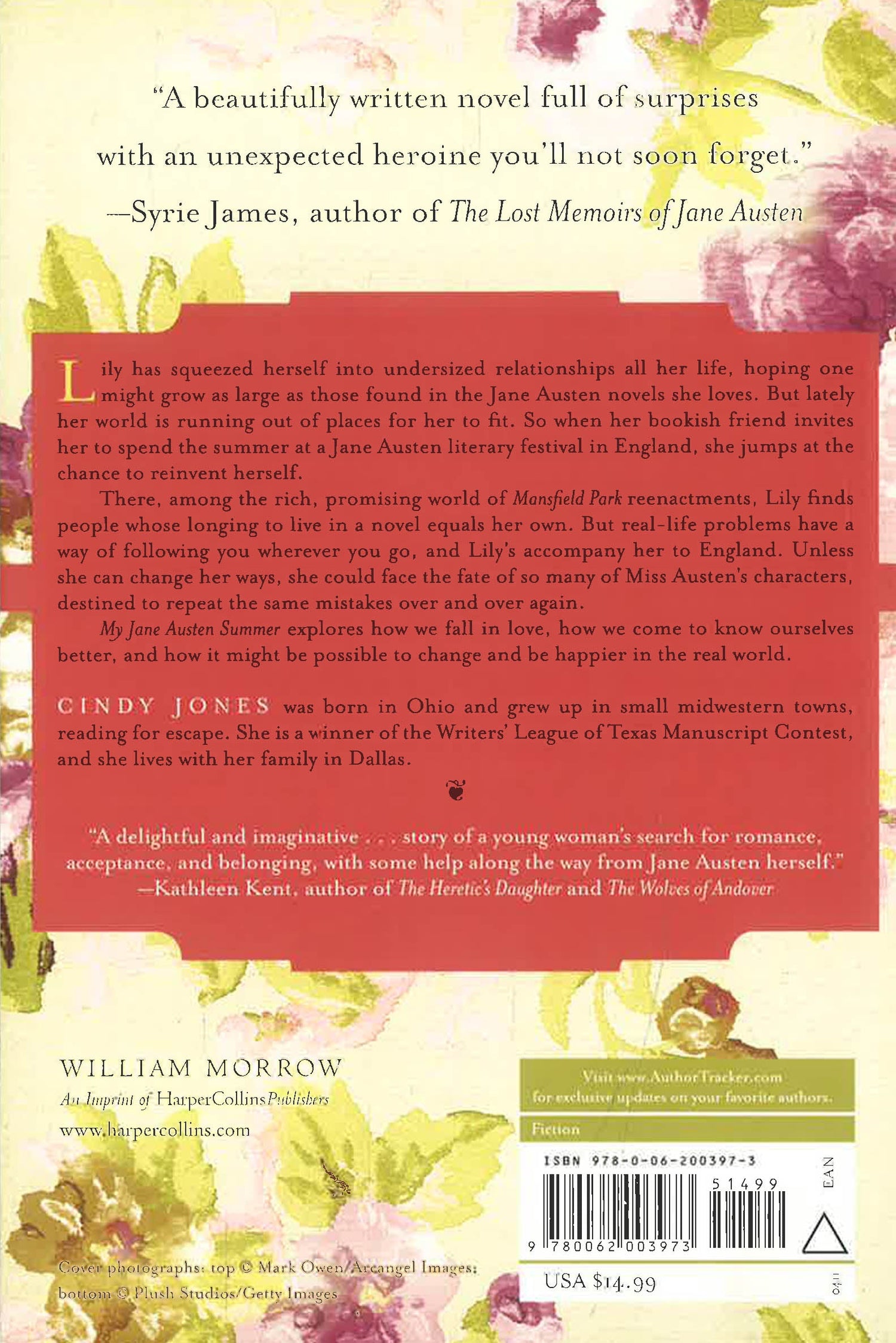 Author Cindy Jones has a gift for the millions of readers everywhere who have been enchanted by Pride and Prejudice, Sense and Sensibility, and the other wondrous works of the inimitable Austen—not to mention fans of more contemporary delights such as The Jane Austen Book Club. Jones’s My Jane Austen Summer is a delightful, funny, poignant novel in which a contemporary woman—an obsessed Austenphile—learns much about life, love, and herself during one magical summer in England spent re-enacting Jane Austen’s Mansfield Park.