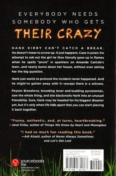 Everybody needs someone who gets their crazy Hank Kirby can't catch a break. He doesn't mean to screw up. It just happens. Case in point: his attempt to ask out the girl he likes literally goes up in flames when he spelled "prom" in sparklers on Amanda Carlisle's lawn...and nearly burns down her house, without ever asking her the big question. Hank just wants to pretend the incident never happened. And he might've gotten away with it-except there is a witness. Peyton Breedlove, brooding loner and budding pyromaniac, saw the whole thing, and she blackmails Hank into an unusual friendship. Sure, Hank may be headed for his biggest disaster yet, but it's only when life falls apart that you can start piecing it back together. "Funny, authentic, and, at turns, heartbreaking."-Jessi Kirby, author of Things We Know by Heart and Moonglass "I had so much fun reading this book."-Adi Alsaid, author of Never Always Sometimes and Let's Get Lost