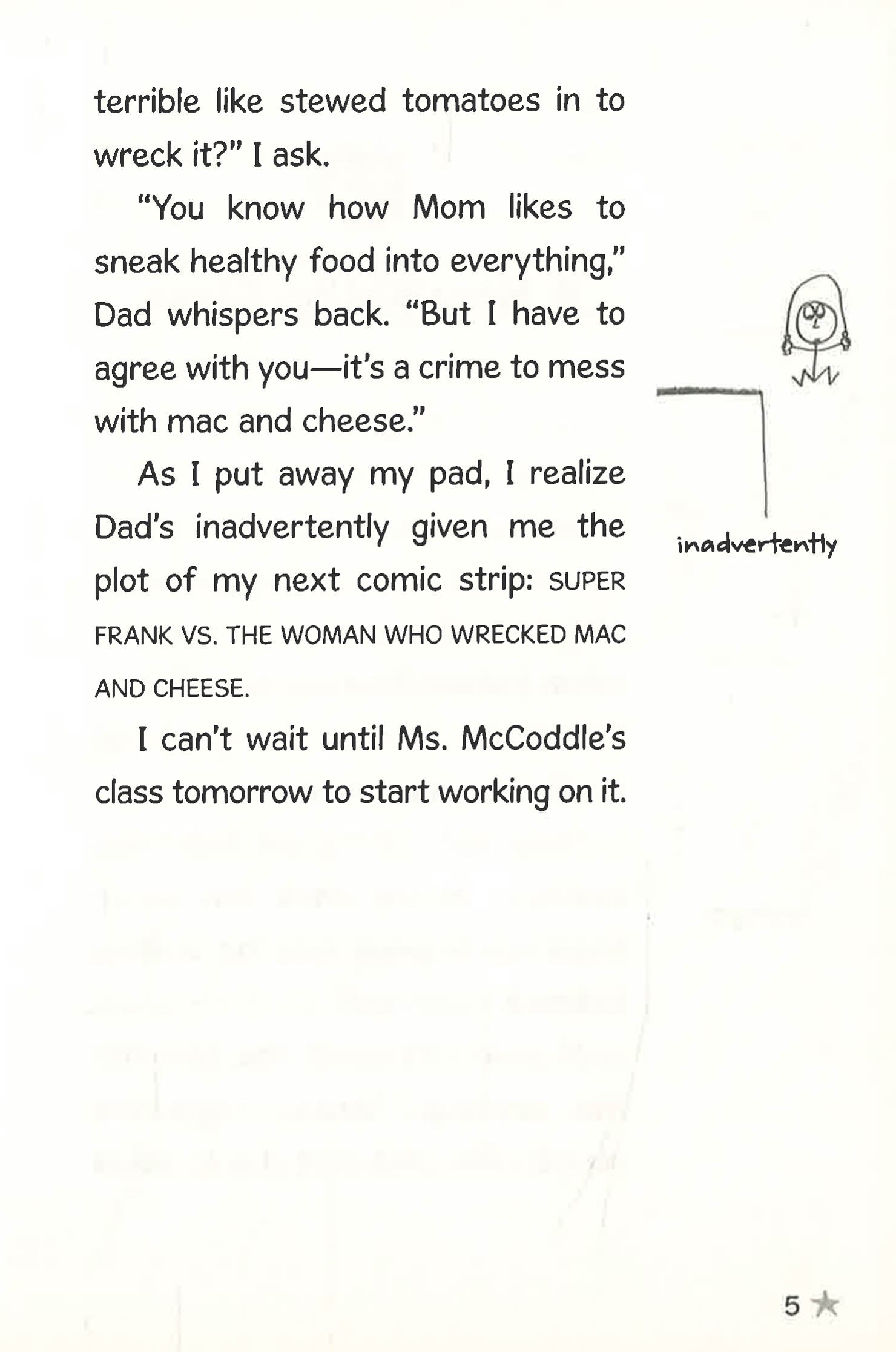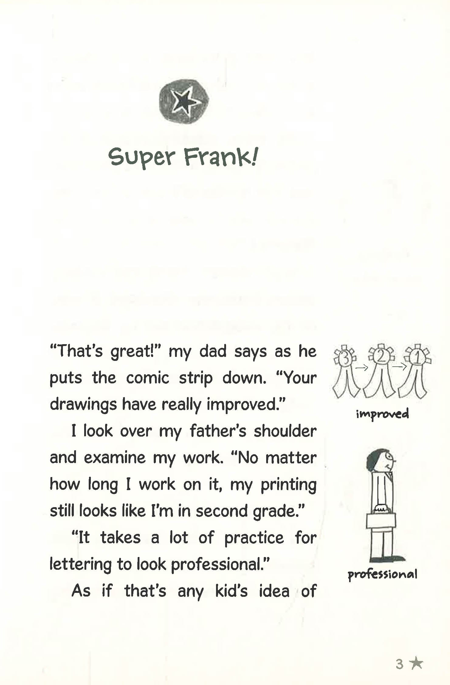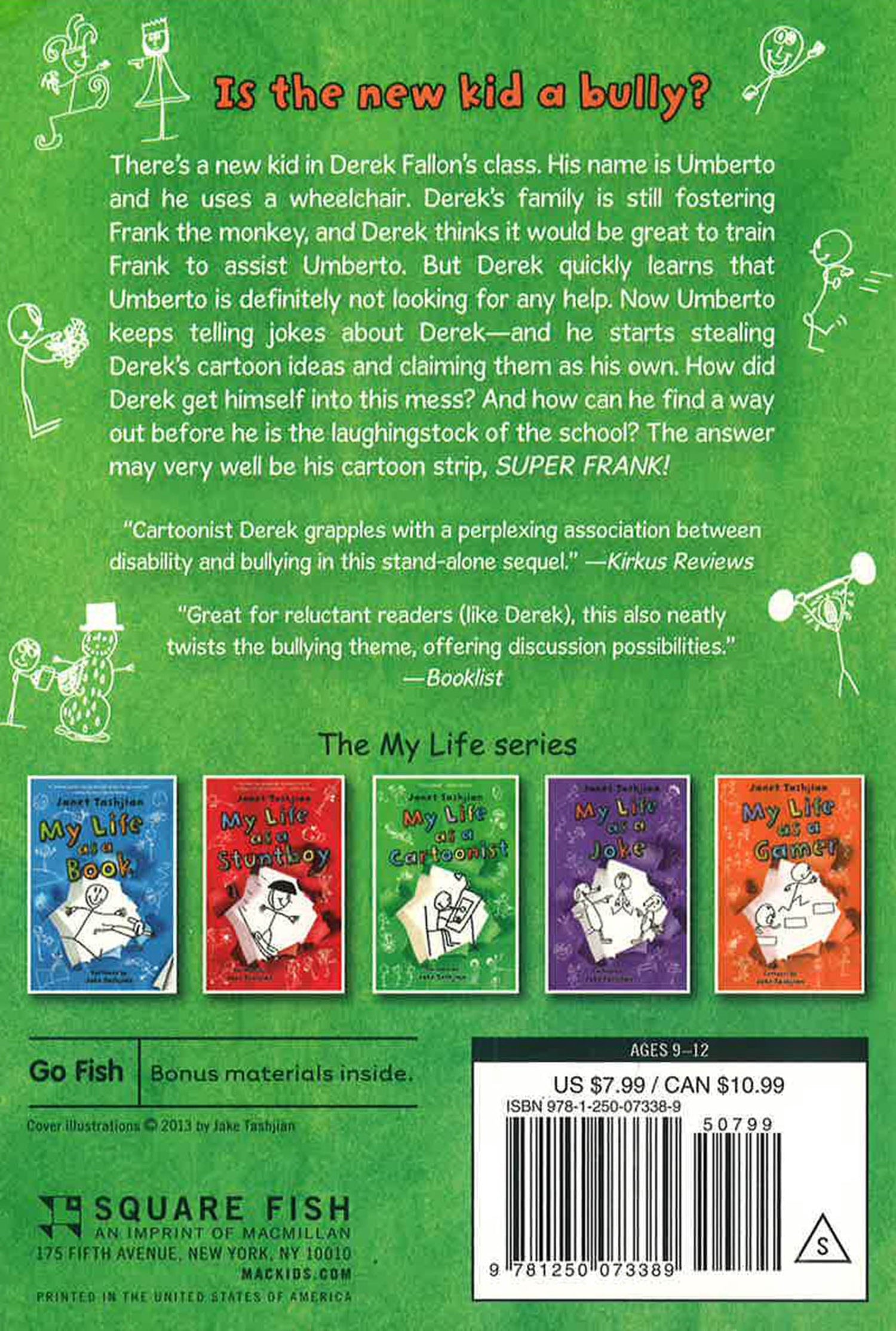 There's a new kid in Derek Fallon's class. His name is Umberto and he uses a wheelchair. Derek's family is still fostering Frank the monkey, and Derek thinks it would be great to train Frank to assist Umberto. But Derek quickly realizes that Umberto is definitely not looking for any help. Derek soon becomes the butt of Umberto's jokes. On top of that, Umberto starts stealing Derek's cartoon ideas and claiming them as his own. How did Derek get himself into this mess and how can he find a way out before he is the laughing stock of school? The answer may very well be his cartoon strip - Super Frank.
