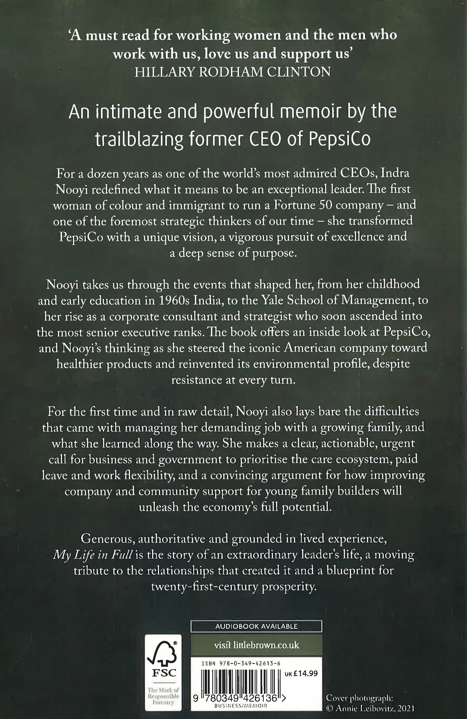 For more than a dozen years as one of the world's most admired CEOs, Indra Nooyi redefined what it means to be an exceptional leader. The first woman, person of colour and immigrant to run a Fortune 50 company - and one of the foremost strategic thinkers of our time - Nooyi transformed PepsiCo with a unique vision, a vigorous pursuit of excellence and a deep sense of purpose. Now, in a rich memoir brimming with grace, grit and good humour, My Life in Full offers a firsthand view of a legendary career and the sacrifices it so often demanded.