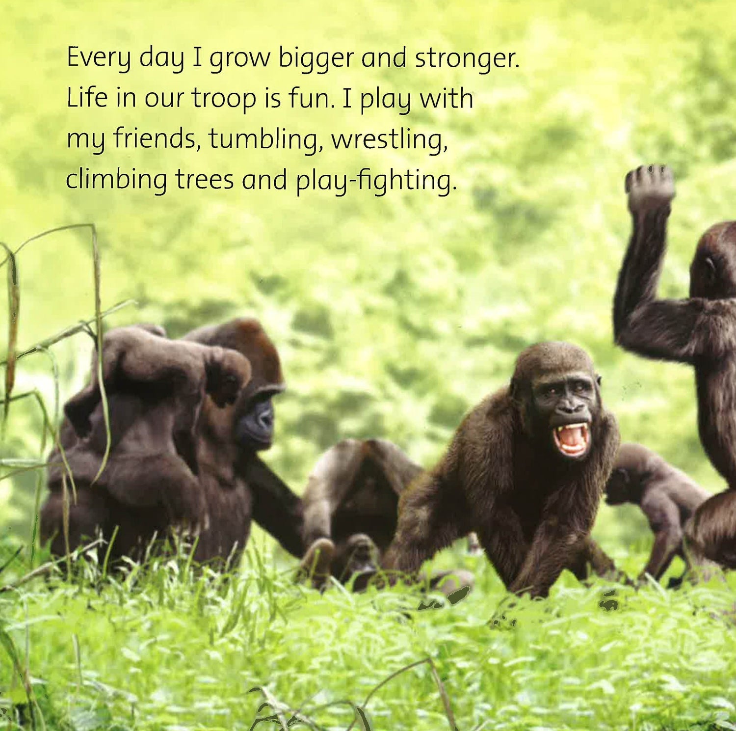 Gorillas are gentle giants unless a wandering silverback tries to invade the troop! This charming, first-person narrative invites readers into the central African rainforest to follow a baby gorillas life cycle Hyperrealistic illustrations will amaze readers as they learn essential science curriculum topics. The incredible Did You Know? section provides a plethora of fun facts about gorillas, and the quiz allows readers an independent learning experience as they test their reading comprehension. This beautifully composed volume is rich with detail to fuel readers critical thinking skills.