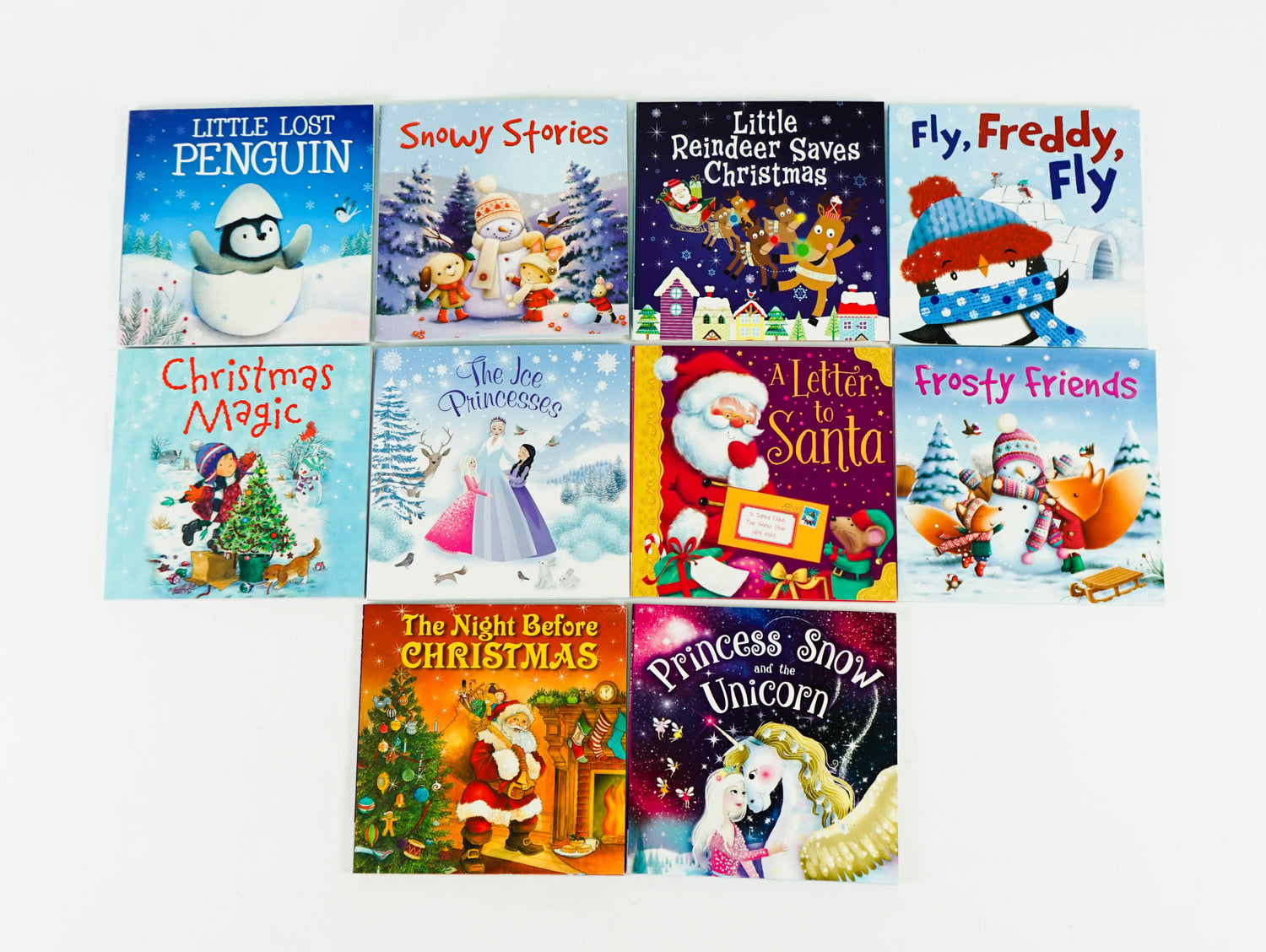 Share the magic of story time with these ten beautiful tales, all stored in a wonderfully decorated box. Play with furry friends in the snow, visit penguins in the South Pole, discover a frozen wonderland and more. Includes: Christmas Magic, A Letter to Santa, Little Reindeer Saves Christmas, The Night Before Christmas, Princess Snow and the Unicorn, Snowy Stories, Frosty Friends, The Ice Princesses, Fly, Freddy, Fly and Little Lost Penguin. Get cosy and enjoy story time with loved ones this Christmas with this gorgeous selection of short stories.