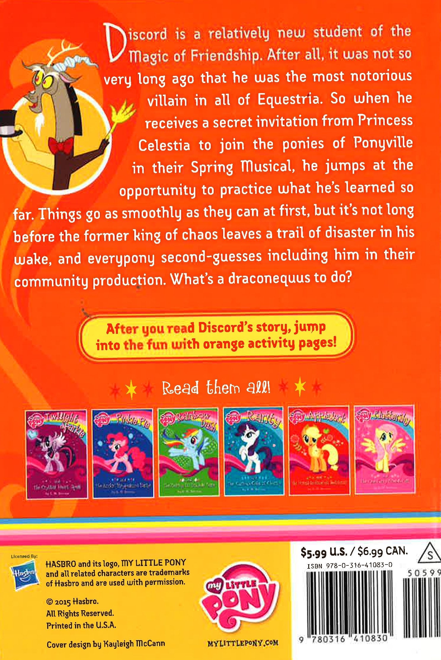 Discord is a relatively new student of the Magic of Friendship. After all, it was not so very long ago that he was the most notorious villain in all of Equestria. So when he receives a secret invitation from Princess Celestia to join the ponies of Ponyville in their Spring Musical, he jumps at the opportunity to practice what he's learned so far. Things go as smoothly as they can first, but it's not long before the former king of chaos leaves a trail of disaster in his wake, and everypony second-guesses including him in their community production. Whats a draconequus to do?
