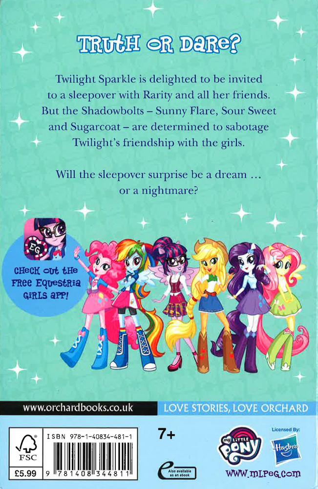Twilight Sparkle is delighted to be invited to a sleepover with Rairity and all her friends. But the Shadowbolts - Sunny Flare, Sour Sweet and Sugarcoat - are deteremined to sabotage Twilight's friendship with the girls. Will the sleepover surprise be a dream ... or a nightmare?