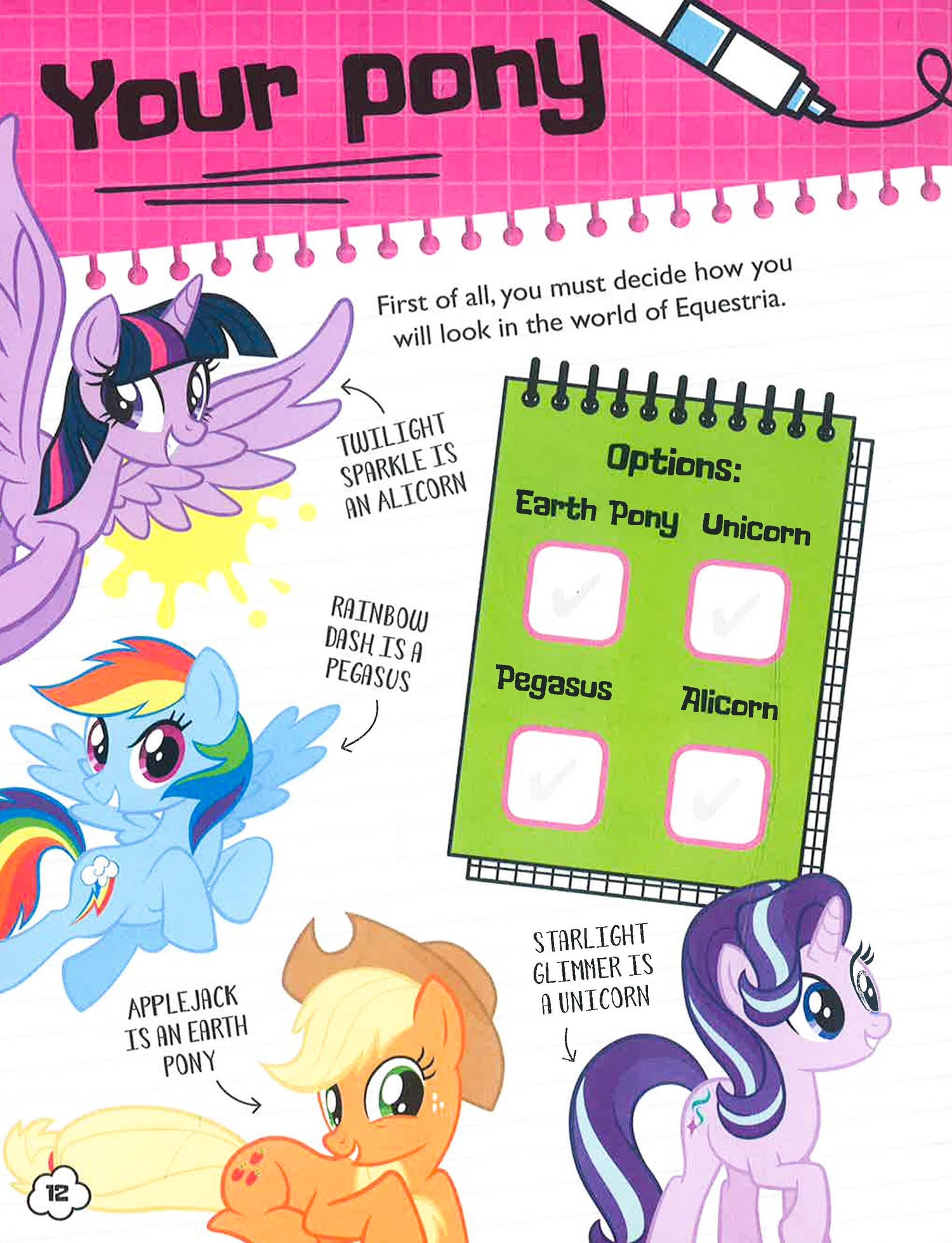 The perfect book for fans of My Little Pony! Enter Twilight Sparkle's School of Friendship and embark on adventures with your favourite ponies. Discover your pony name and cutie mark, fill in your own dream diary with Princess Luna and plan best friend days with Starlight Glimmer. This journal is filled with fun, fillies and friendship, making it the perfect companion for everypony! In the land of Equestria, the Mane 6 embark upon adventures together with Ponies, Hippogriffs, Dragons and many other creatures. Whether battling villains, helping friends in need or throwing a really good party, Twilight Sparkle and friends are always on hand to share love, magic, kindness and friendship.