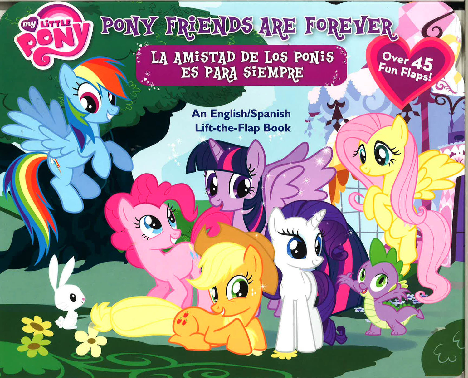With dozens of flaps to lift and lots of words to learn, My Little Pony fans will have lots to cheer about in this best-selling format! Equestria is a land of magic, fun, and friendship! Kids will love seeing all their friends--Twilight Sparkle, Fluttershy, Rarity and more--in this colorful book packed with over 40 flaps to open and surprises to find. Seek-and-find activities throughout and busy scenes with English/Spanish labels make this book engaging and fun for pony fans everywhere!
