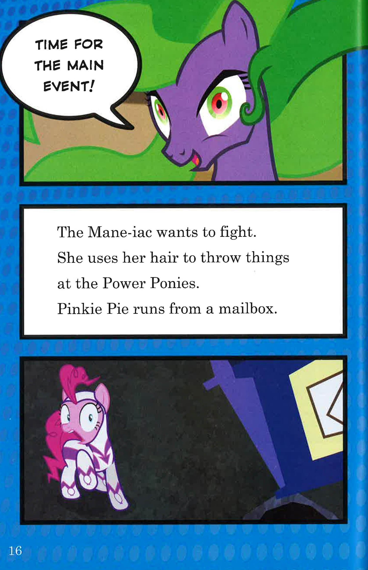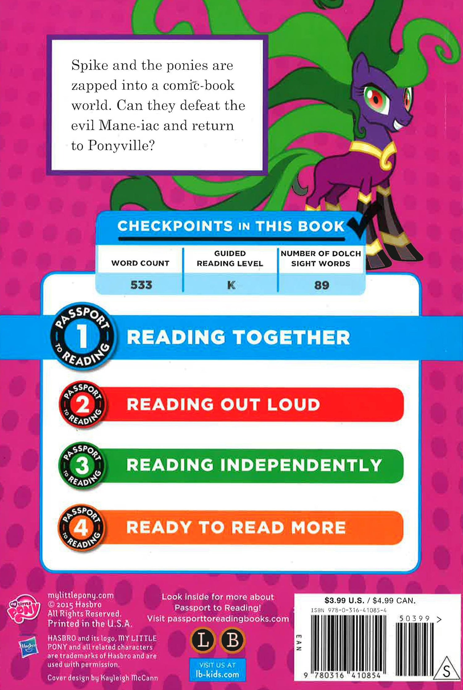 Power Ponies to the Rescue! Spike and the ponies--Twilight Sparkle, Pinkie Pie, Fluttershy, Rainbow Dash, and Applejack--are pulled into a comic book world and must defeat an evil mare! Can they save the day?Filled with vibrant stills from the animated series, My Little Pony Friendship is Magic. Passport to Reading Level 1 (c) 2015 Hasbro. All Rights Reserved.
