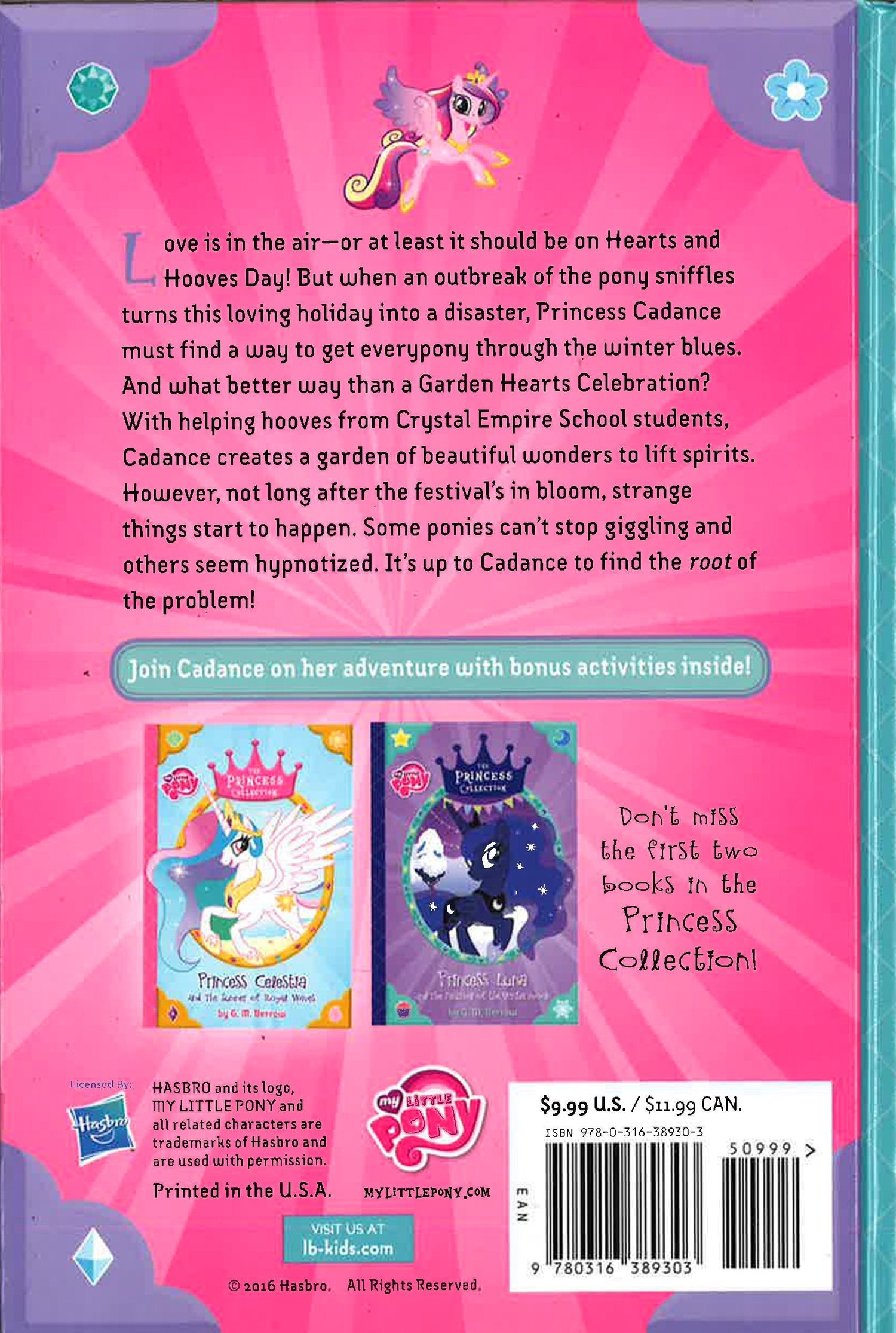 Love is in the air - or at least it should be on Hearts and Hooves Day! But when an outbreak of the pony sniffles turns this loving holiday into a disaster, Princess Cadance must find a way to get every pony through the winter blues. And what better way than a Garden Hearts Celebration? With helping hooves from Crystal Empire School students, Cadance creates a garden of beautiful wonders to lift spirits. However, not long after the festival's in bloom, strange things start to happen. Some ponies can't stop giggling and others seem hypnotized. It's up to Cadance to find the root of the problem.