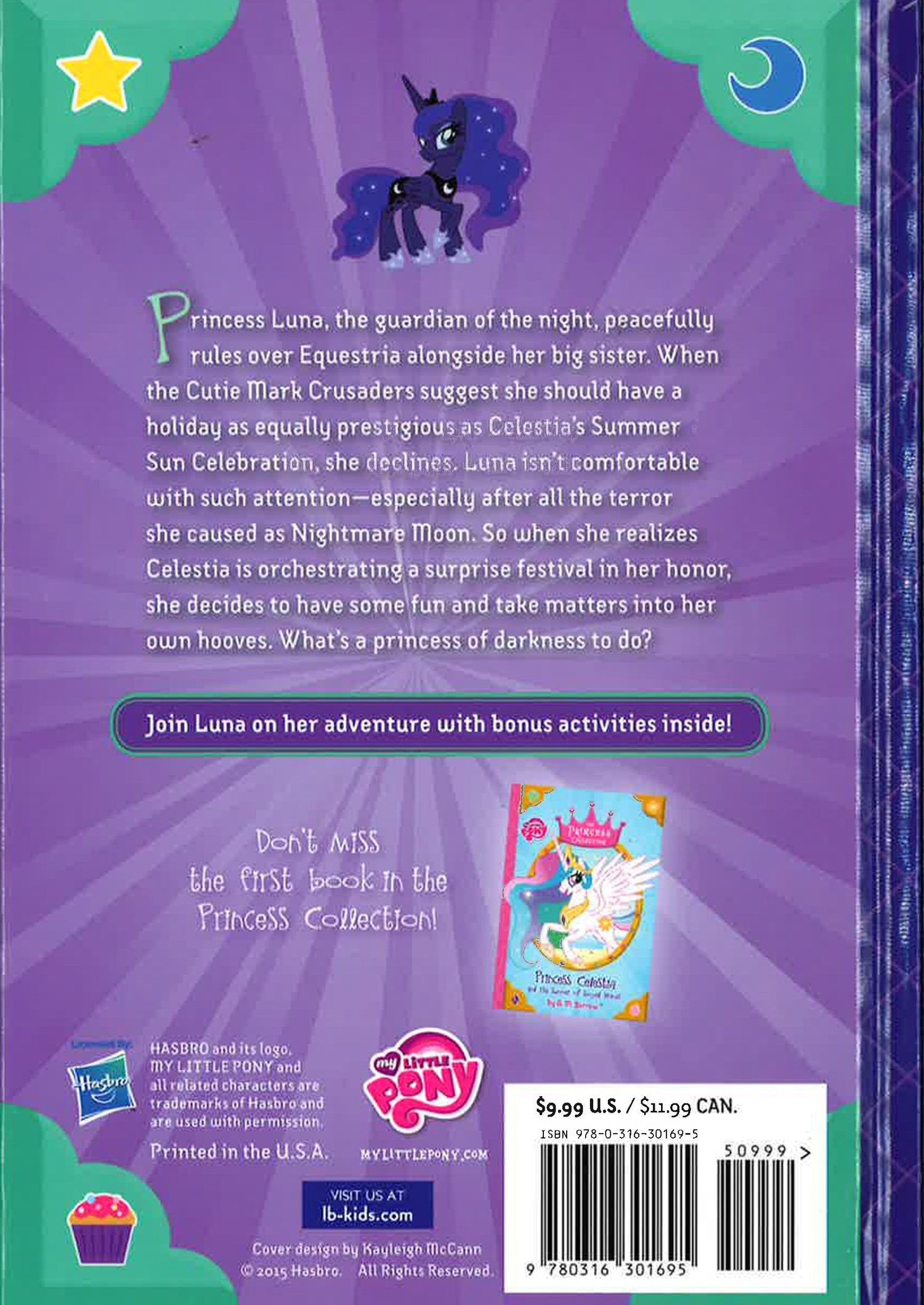 Princess Luna, the guardian of the night, peacefully rules over Equestria alongside her big sister. When the Cutie Mark Crusaders suggest she should have a holiday as equally prestigious as Celestia's Summer Sun Celebration, she declines. Luna isn't comfortable with such attention--especially after all the terror she caused as Nightmare Moon. So when she realizes Celestia is orchestrating a surprise festival in her honor, she decides to have some fun and take matters into her own hooves. What's a princess of darkness to do? (c)2015 Hasbro. All Rights Reserved.