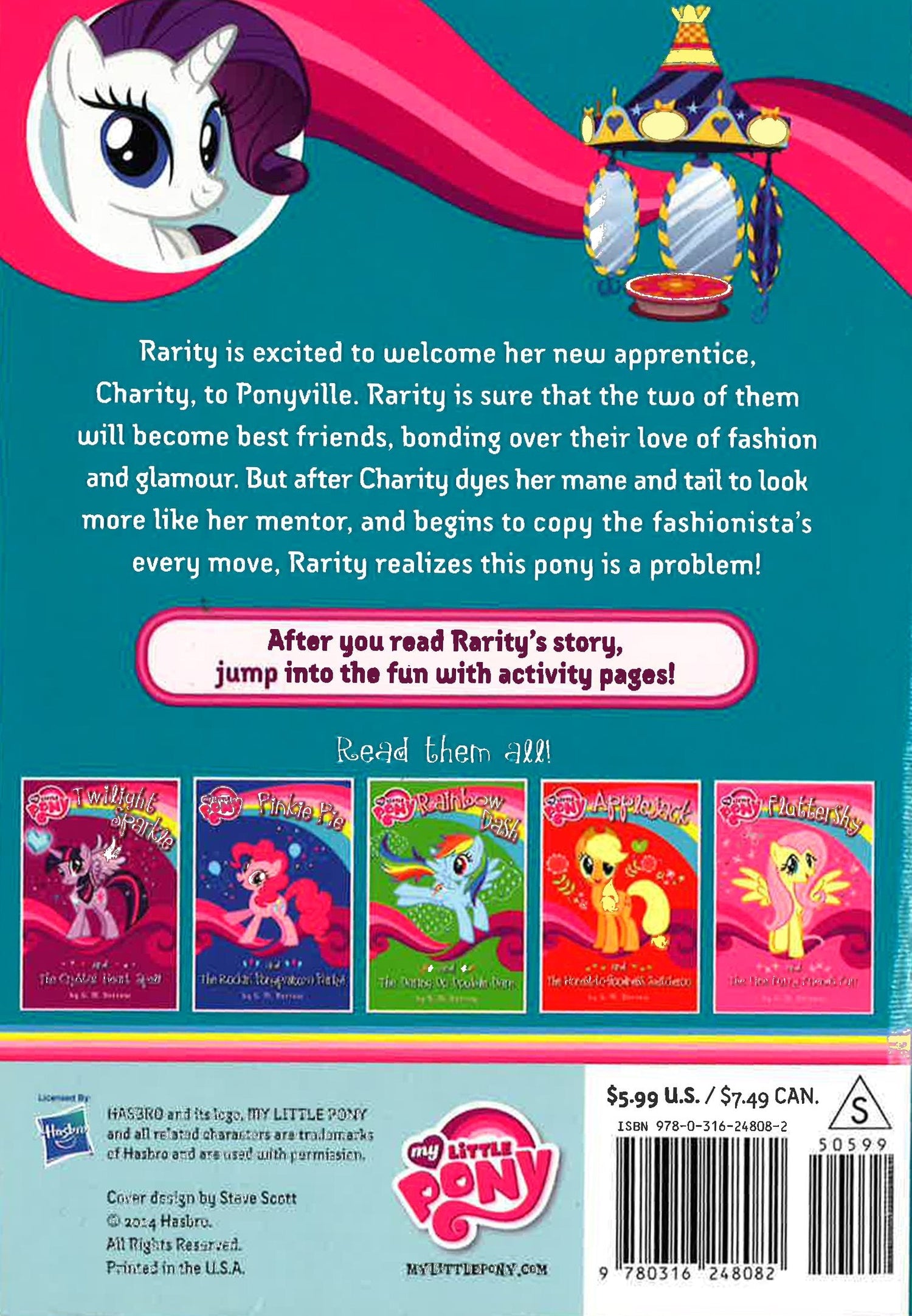Rarity is excited to welcome her new apprentice, Charity, to Ponyville. Rarity is sure that the two of them will become best friends, bonding over their love of fashion and glamour. But after Charity dyes her mane and tail to look more like her mentor, and begins to copy the fashionista's every move, Rarity realizes this pony is a problem!