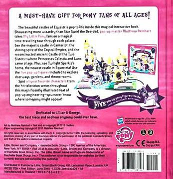 The beautiful castles of Equestria pop to life inside this magical interactive book. Showcasing more wizardry than Star Swirl the Bearded, pop-up master Matthew Reinhart takes My Little Pony fans on a magical time-traveling tour through each palace. See the majestic castle in Canterlot, the shining spire of the Crystal Empire, and the reconstructed ancient Castle of the Two Sisters--where Princesses Celestia and Luna began their rule. Plus, see Twilight Sparkle's home, the newest castle in Equestria!