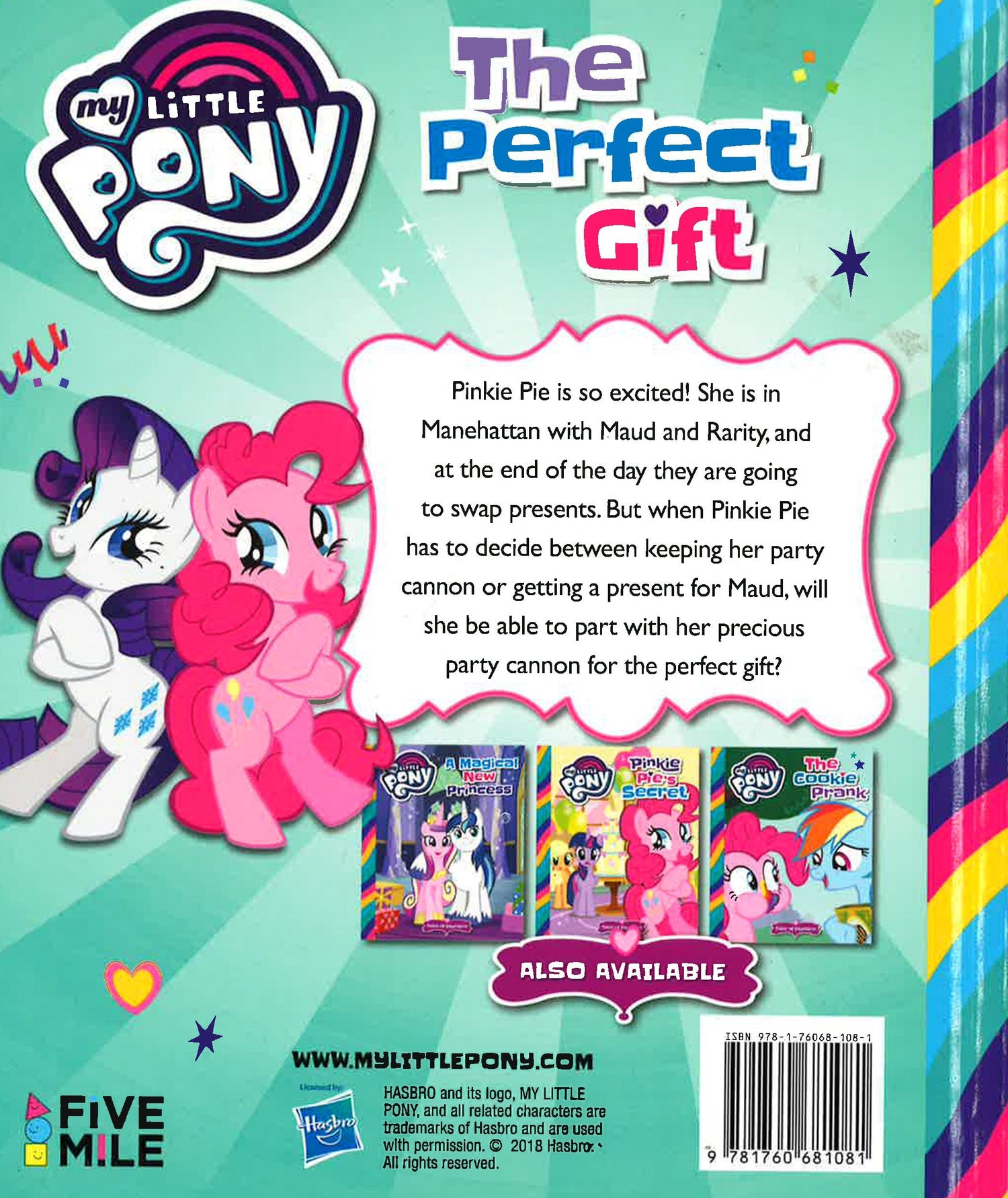 Delight young My Little Pony fans with this fantastic storybook featuring events from the smash-hit TV series! Fantastic retellings in a condensed and easy-to-read format, these positively adorable new My Little Pony storybook titles are the perfect way to get even the most reluctant readers excited about reading. Pinkie Pie is so excited! She is in Manehattan with Maud and Rarity, and at the end of the day they are going to swap presents. The only problem is that she hasn't got a present for Maud yet! Will she be able to find her sister the perfect gift in time?