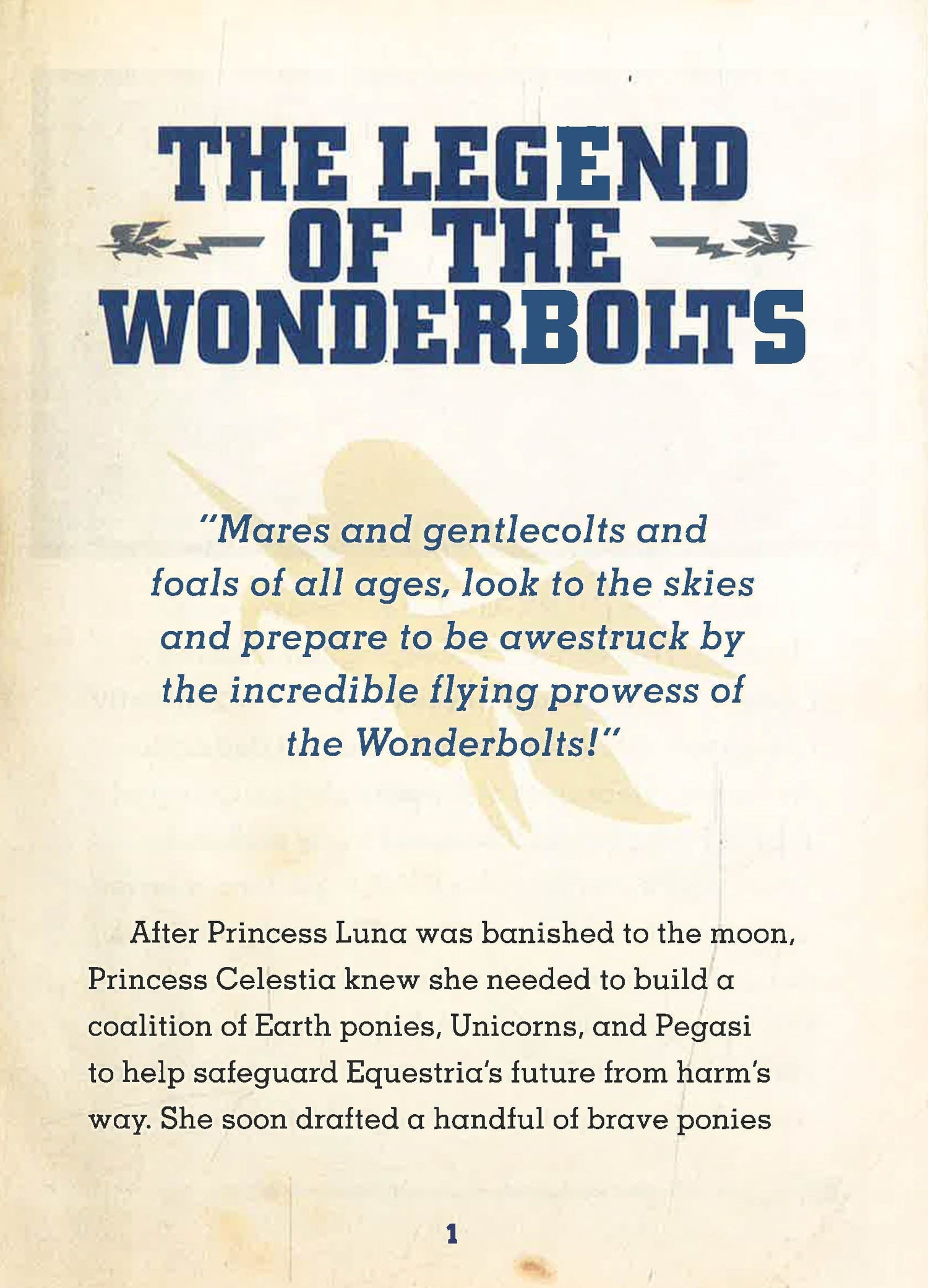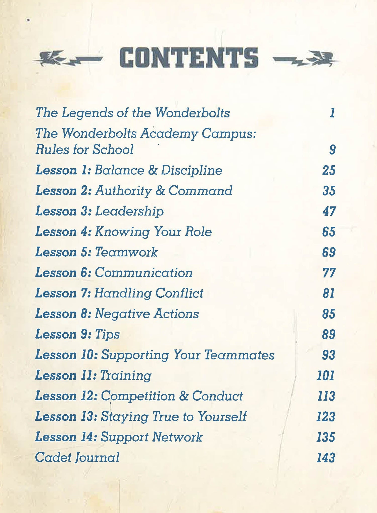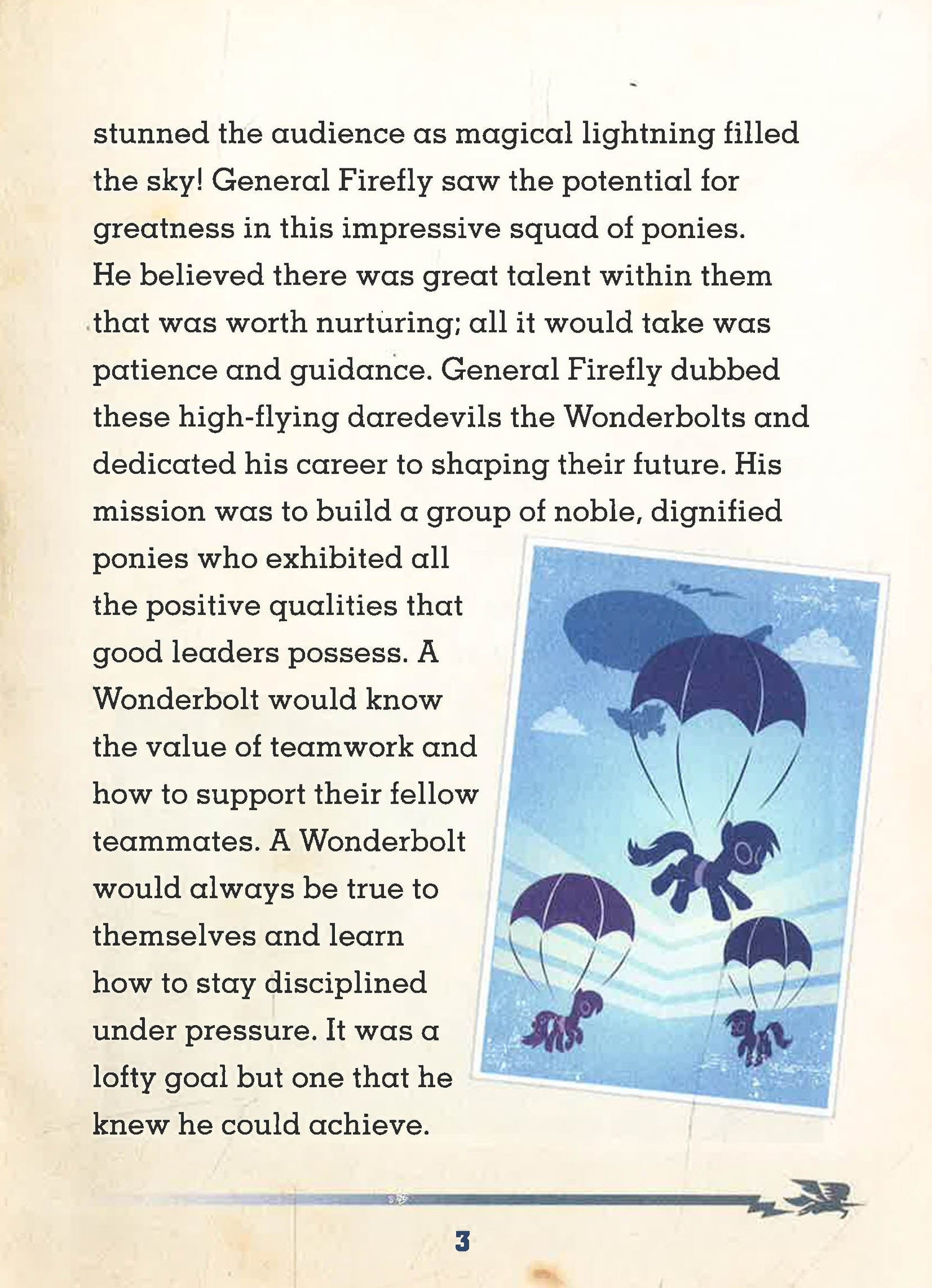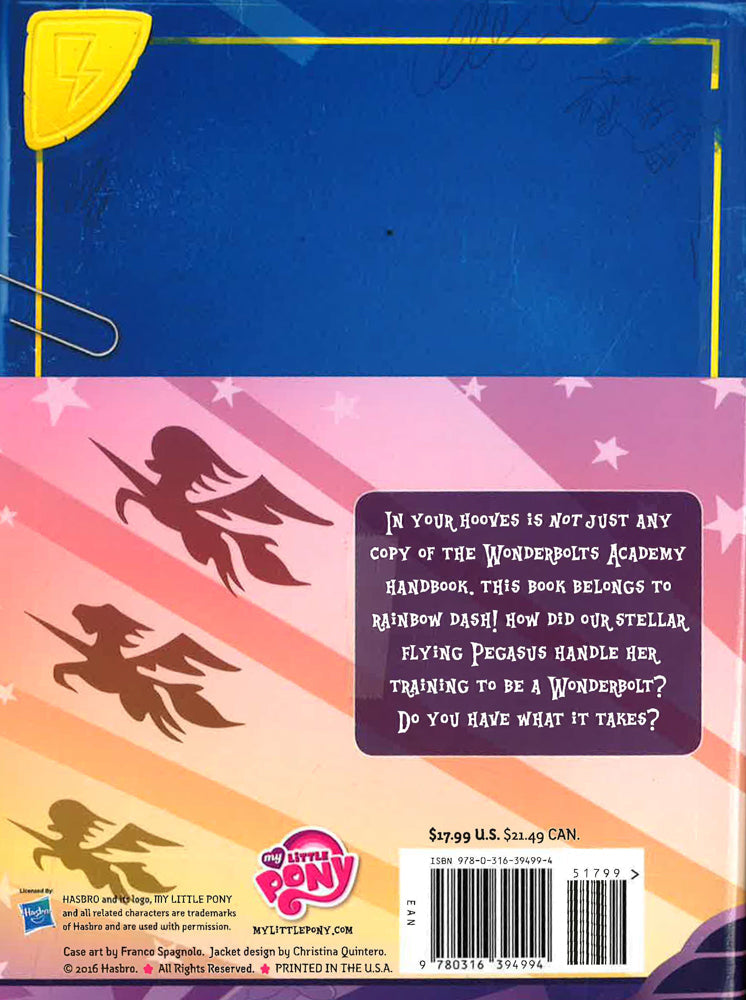 Attention cadets! This Wonderbolts Academy Handbook once belonged to Rainbow Dash! Along with valuable information on how to become a Wonderbolt, our stellar Pegasus pony added her own notes to help you along. The lessons in here have been passed down for generations, with each generation refining these lessons to better serve you and the institution. You will have much to learn and all staff and senior members of the Wonderbolts are more than willing to guide you. Good luck, have fun, and stay focused!