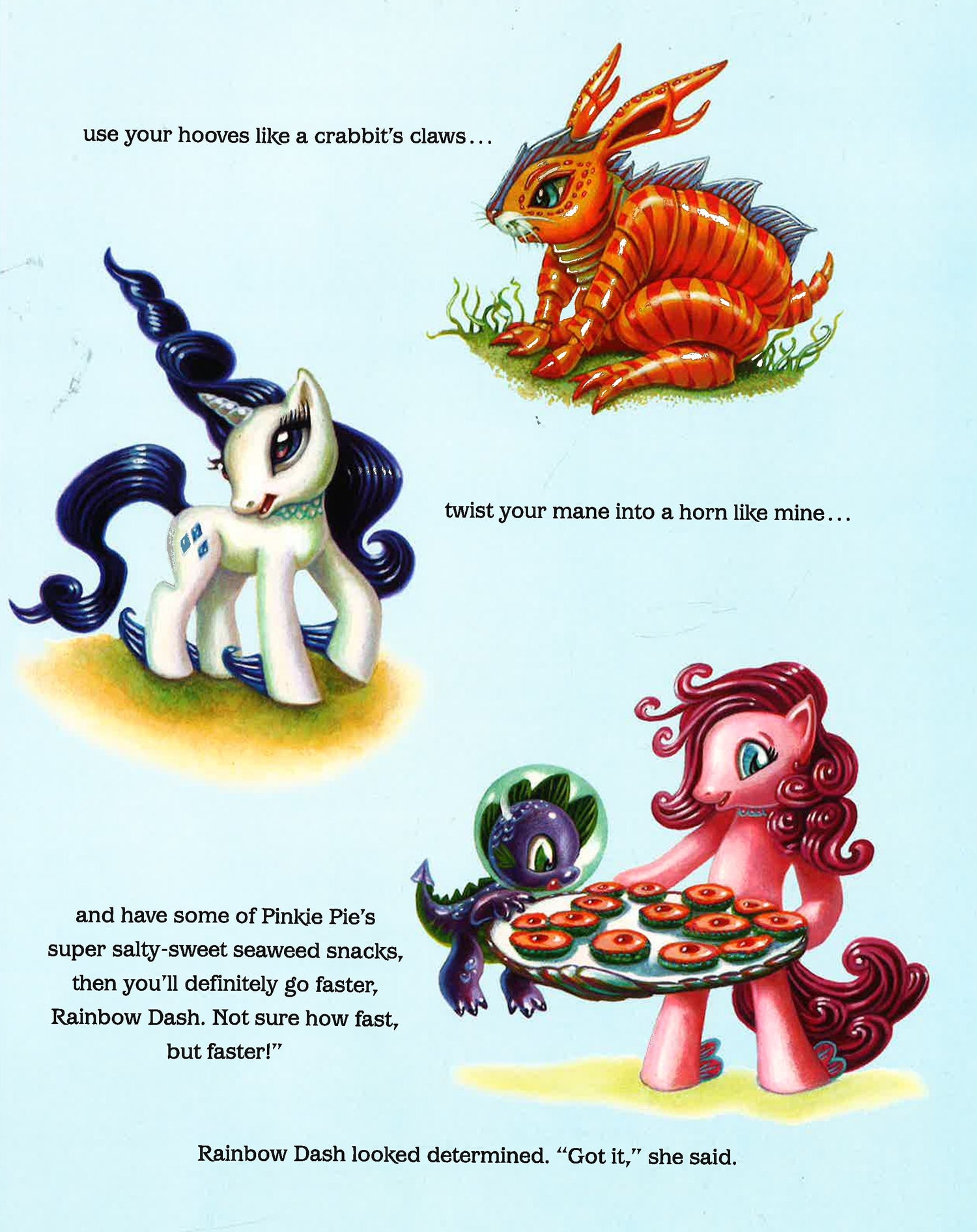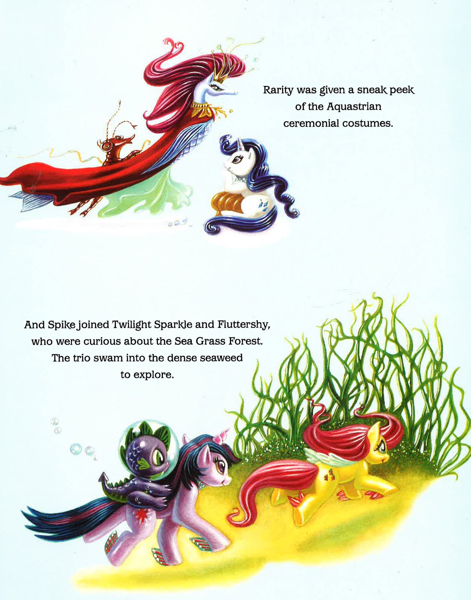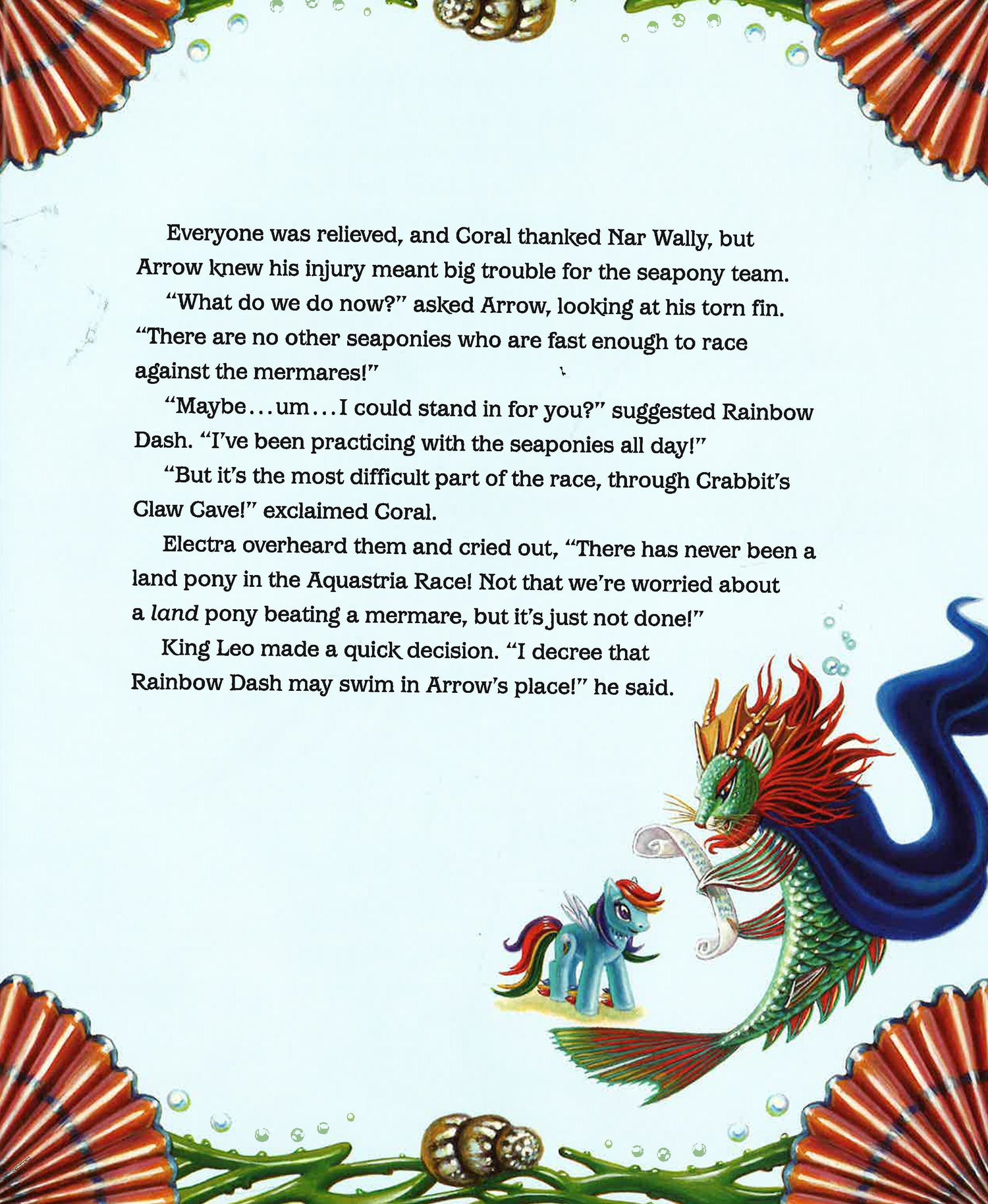 This gorgeous illustrated picture book features a brand-new My Little Pony underwater adventure, and includes an exclusive art poster!When Twilight Sparkle receives an invitation to visit the underwater city of Aquastria, she invites all her pony friends and Spike to travel with her. The ponies are welcomed by the ruler of Aquastria, King Leo, who sits on the Cosmic Council alongside his cousin, Princess Celestia. There is a long-held rivalry between the seaponies and the mermares. The two groups compete each year in a race for the grand prize, which is a beautiful pearl. Join the ponies and Spike as they confront danger, make new friends and race to the finish in this shimmering new world!