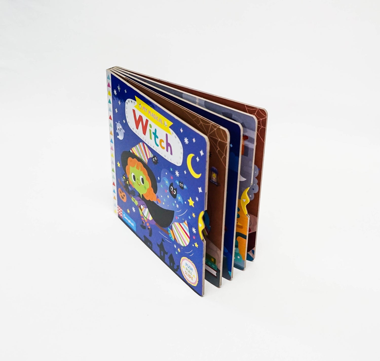 Go on a broomstick ride with a colourful witch in My Magical Witch! With a sparkly foil cover and push, pull and turn mechanisms, little ones will have lots of fun taking part in the witch's spooky adventure! Yujin Shin's beautifully coloured illustrations are paired with gentle rhyming text and lots of things to spot in four bright and busy magical scenes. Perfect for little fingers and inquisitive minds, enjoy more magical adventures with My Magical Unicorn, My Magical Dragon and My Magical Mermaid.