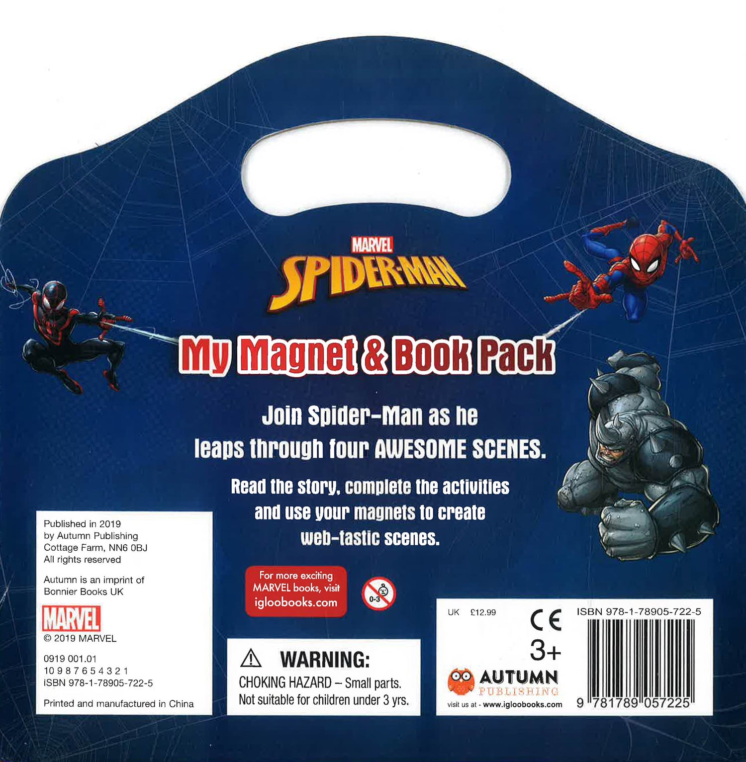 Gatefold magnet sheets features 4 Spider-Man scenes to add magnets to.