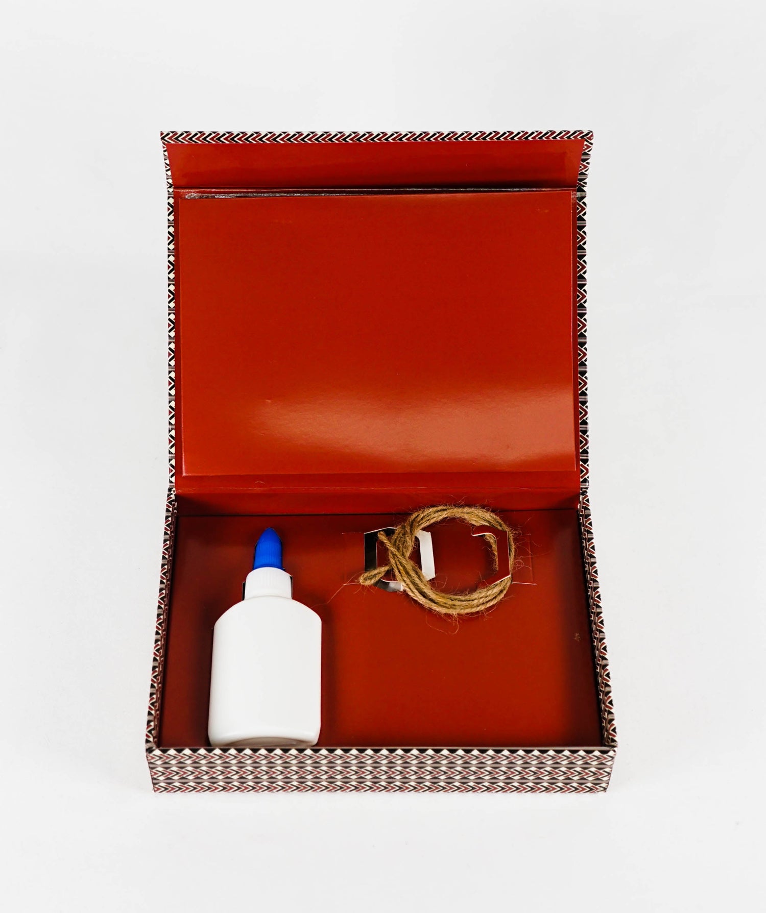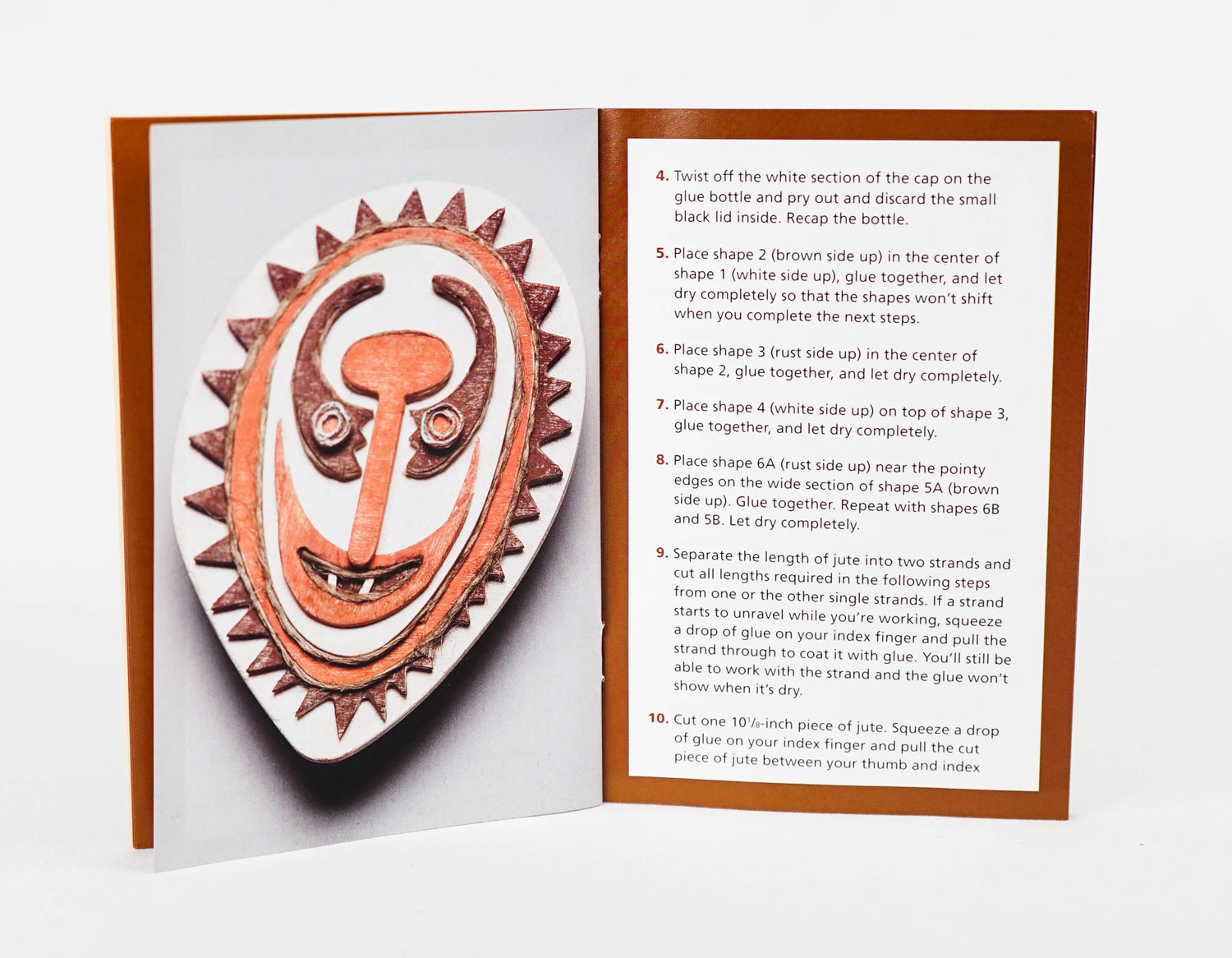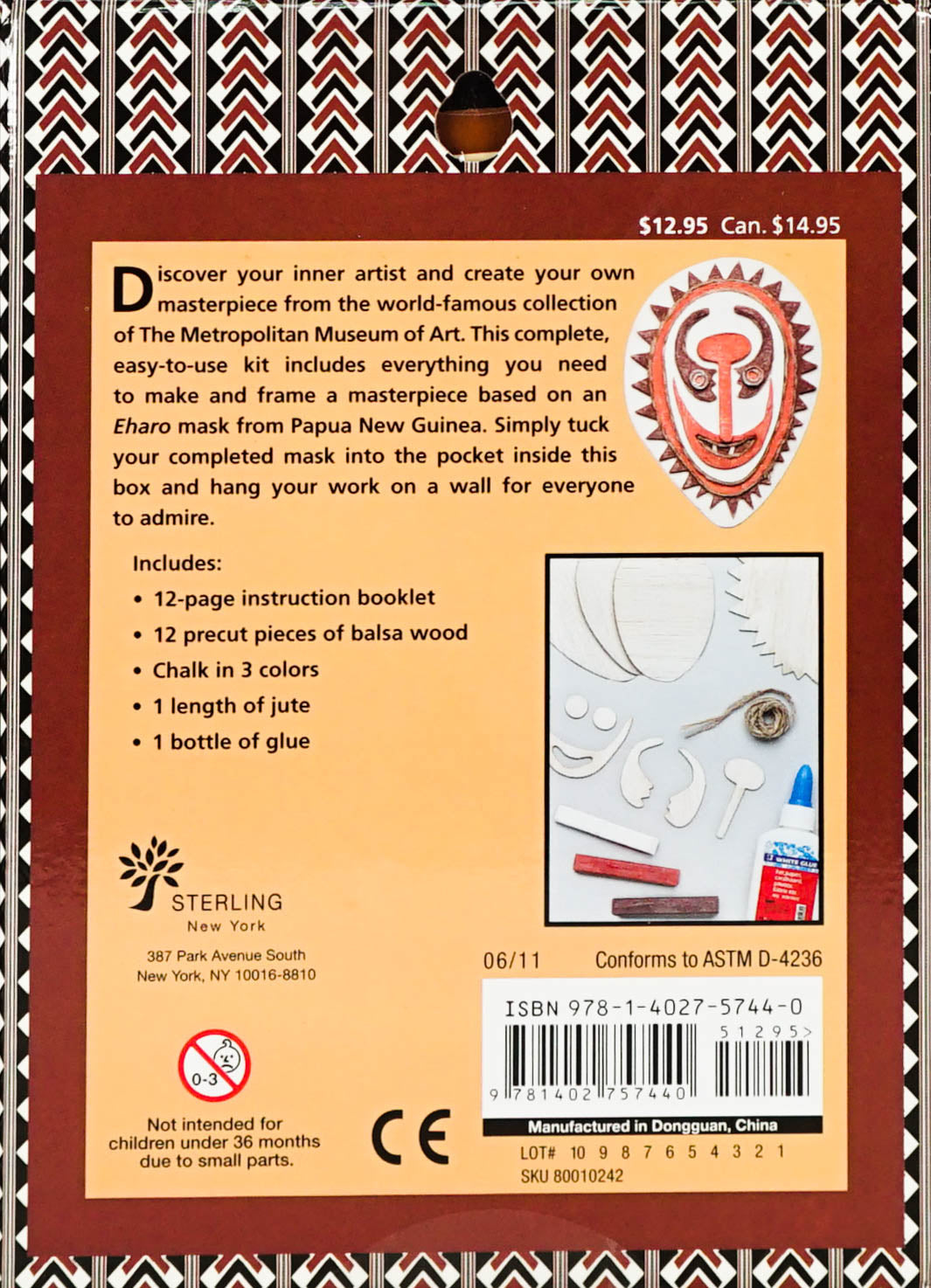 This title is inspired by a gold griffin in the collection of the Metropolitan Museum of Art. It includes all the materials needed, plus a brochure of step-by-step instructions and photographs. It is suitable for children aged 8 to 12 years old. "The Pacific Island Mask Kit" was inspired by a mask in the collection of The Metropolitan Museum of Art made by the Elema people of New Guinea. Eharo masks were worn by young men before the start of a serious ceremony. This kit includes twelve precut pieces of wood over board, three sticks of chalk, a length of jute, a bottle of glue and a museum label, plus a brochure of step-by-step instructions, photographs and information about the design.