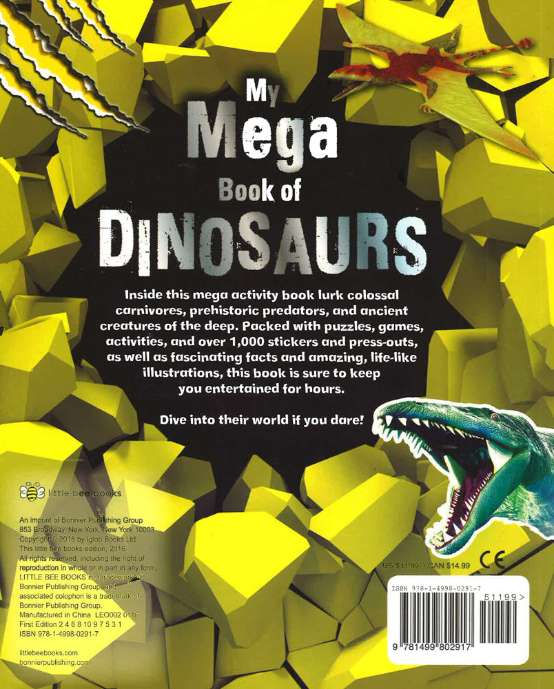 Inside this mega activity book lurk colossal carnivores, prehistoric predators, and ancient creatures of the deep. Packed with puzzles, games, activities, and over 1,000 stickers and press-outs, as well as fascinating facts and amazing, life-like illustrations, this book is sure to keep you entertained for hours. Dive into their world if you dare!