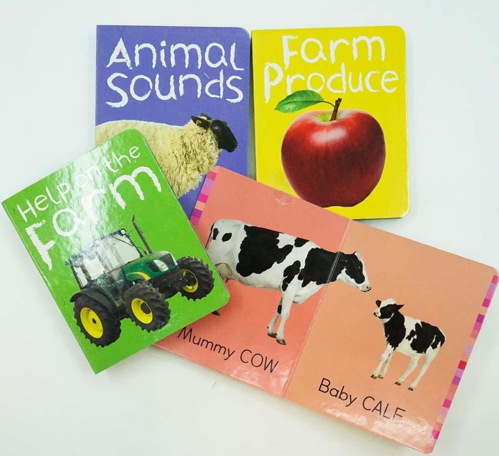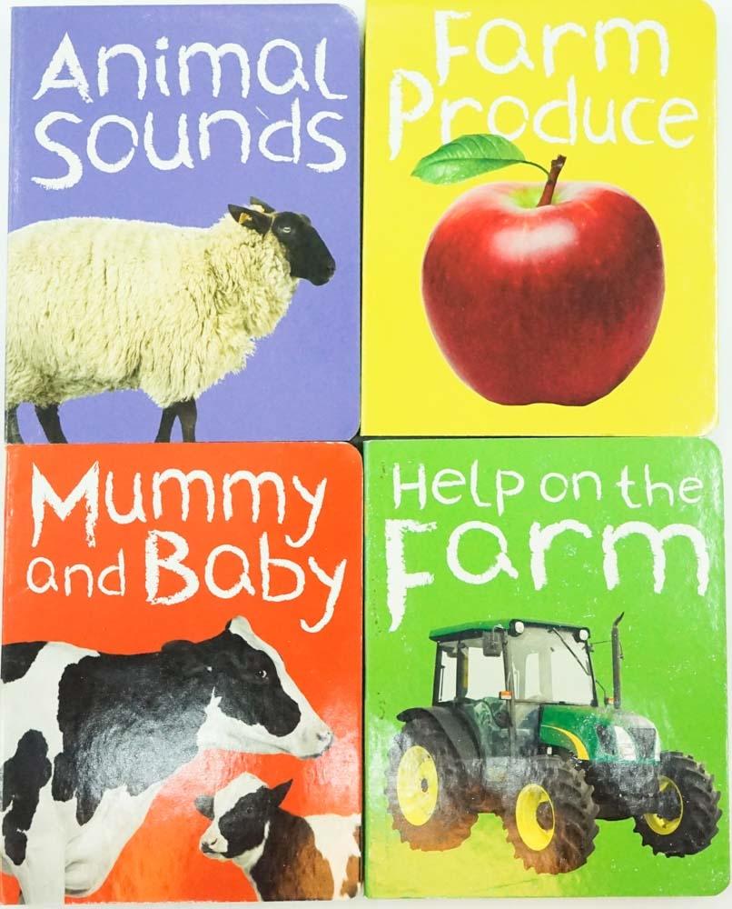Learn all about life on a farm. From animal sounds to farmyard machines, in this set of four board book.With bright colours and engaging photographs, it is an ideal addition to your baby's bookshelf!