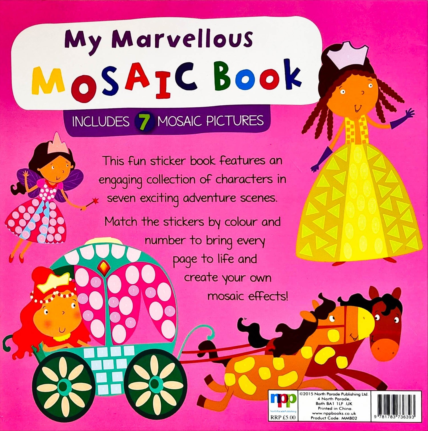This fun sticker book features an engaging collection of characters in seven exciting adventure scenes. Match the stickers by color and number to bring every page to life and create your own mosaic effects!