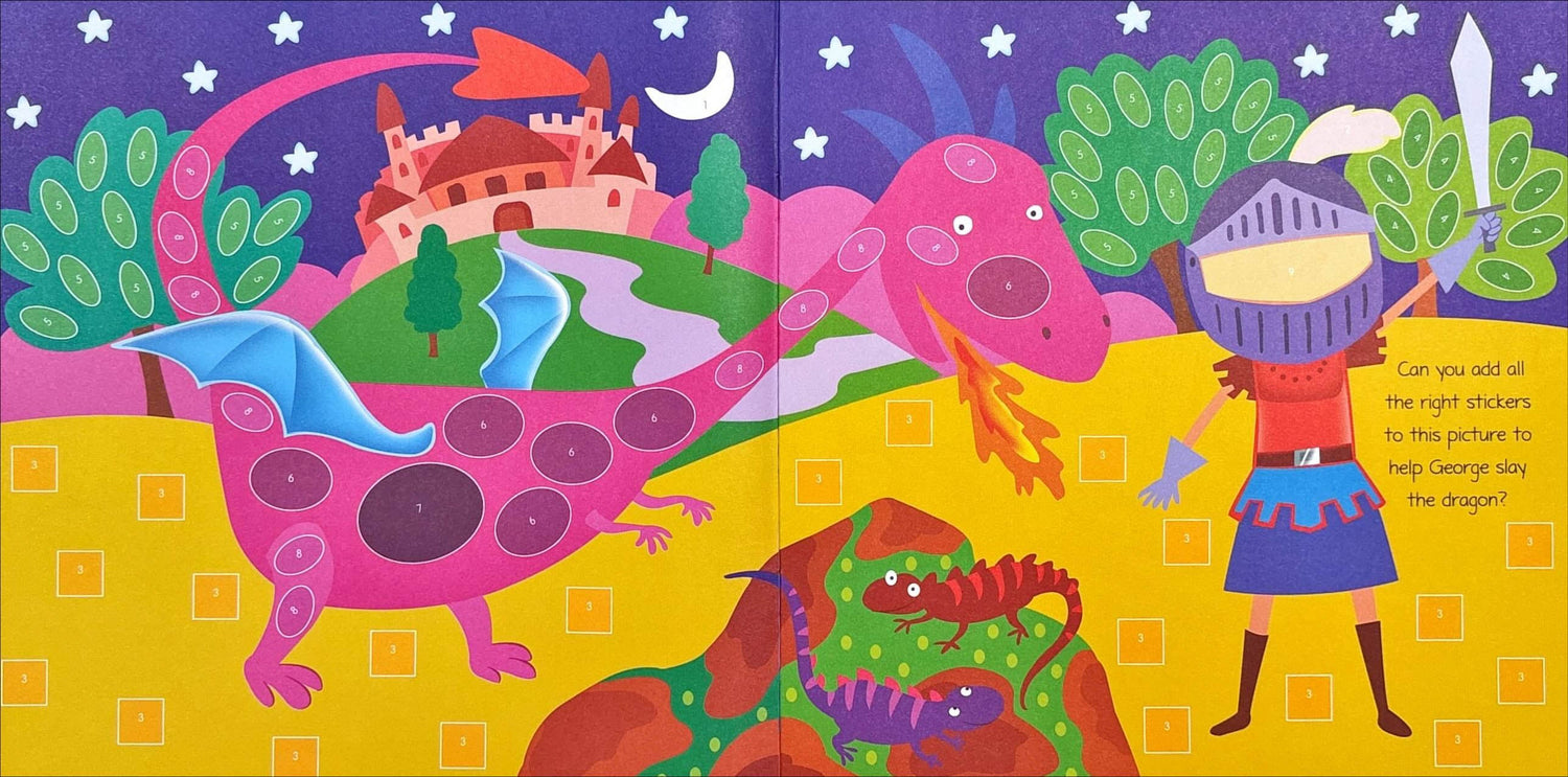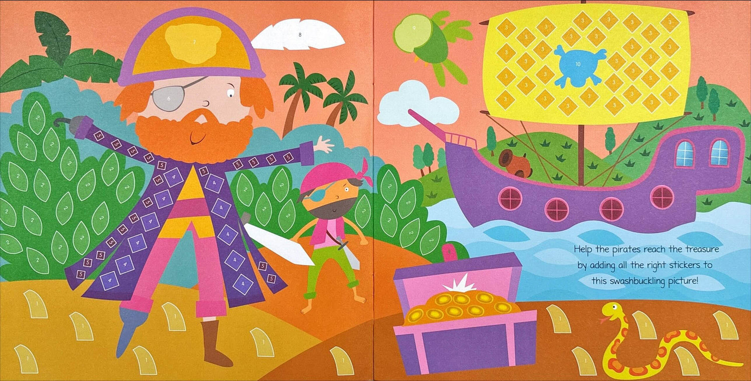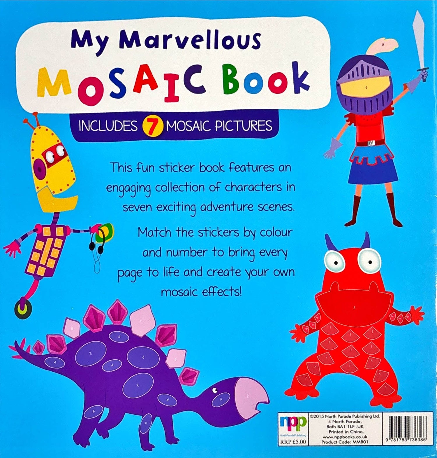 This fun sticker book features an engaging collection of characters in seven exciting adventure scenes. Match the stickers by color and number to bring every page to life and create your own mosaic effects!