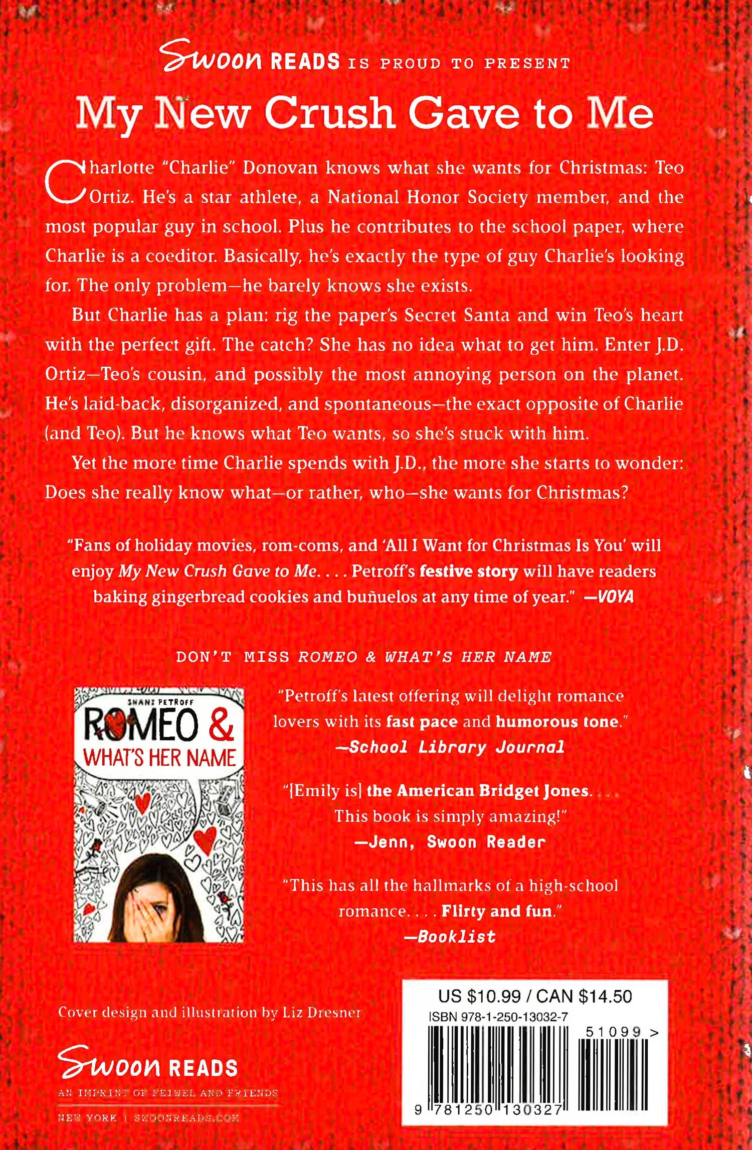 This sweet, funny holiday romance from the author of Romeo And What's Her Name features cute boys, plenty of rom-com mishaps, and a determined heroine readers are certain to fall for. Charlotte "Charlie" Donovan knows exactly what she wants for Christmas: Teo Ortiz. He's a star athlete, a National Honor Society member, and the most popular guy in school. Plus he contributes to the school paper, where Charlie is a co-editor. Basically, he's exactly the type of guy Charlie's looking for. The only problem is--he barely knows she exists. But Charlie has a plan: rig the paper's Secret Santa and win his heart with the perfect gift. The catch? She has no idea what to get him. Enter J.D. Ortiz-Teo's cousin, and possibly the most annoying person on the planet. He's easy going, laid back, disorganized, and spontaneous--the exact opposite of Charlie (and Teo). But he knows what Teo wants, so she's stuck with him. Yet, the more time Charlie spends with J.D., the more she starts to wonder: Does she really know what, or rather who, she wants for Christmas? Shani Petroff's newest young adult comedy of errors, My New Crush Gave to Me, is the perfect read for those searching for some love and laughter along with their holiday spirit. Praise for My New Crush Gave to Me "Fans of holiday movies, rom-coms, and "All I Want for Christmas Is You" will enjoy My New Crush Gave to Me.... Petroff's festive story will have readers baking gingerbread cookies and bunuelos at any time of year." --VOYA "It's light as powdered sugar and just as sweet." --Booklist