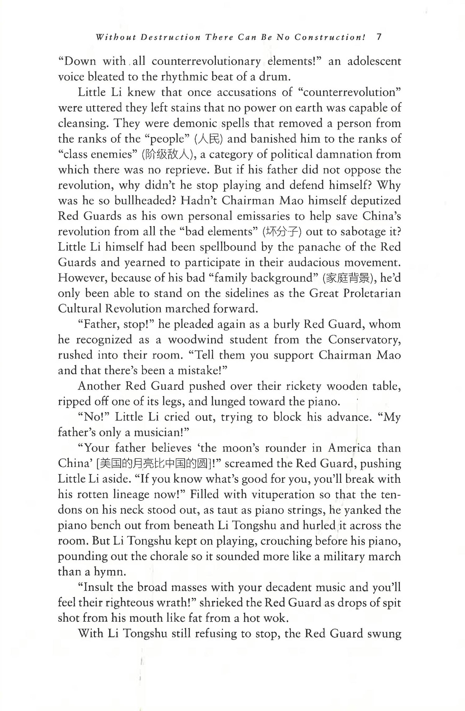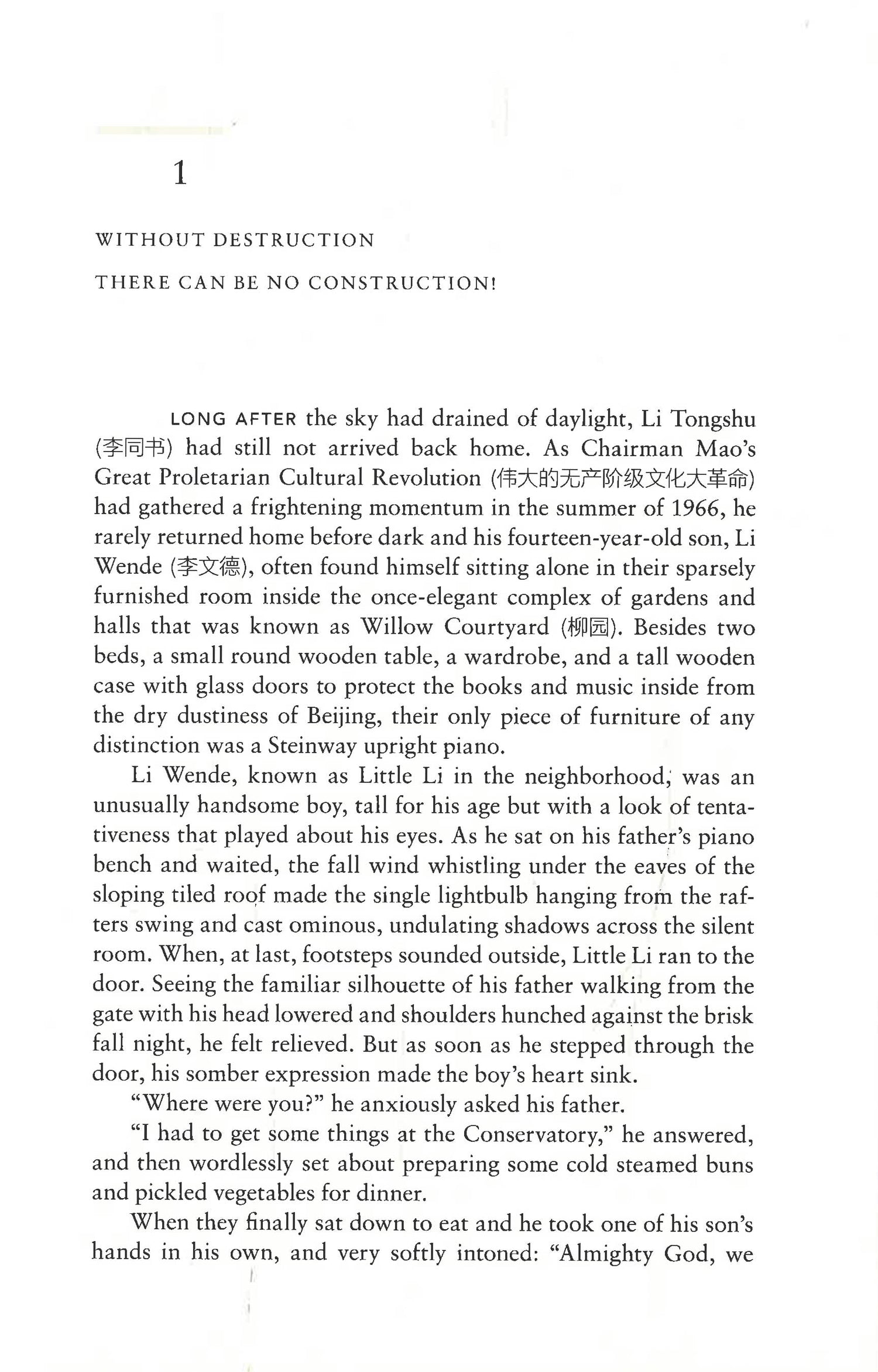 But instead of being allowed to teach, Li Tongshu is plunged into Mao’s manic revolution, which becomes deeply distrustful of his Western education and his American wife. It’s not long before his son, Little Li, also gets caught up in the maelstrom of political and ideological upheaval that ends up not only savaging the Li family but, ultimately, destroying the essential fabric of Chinese society.