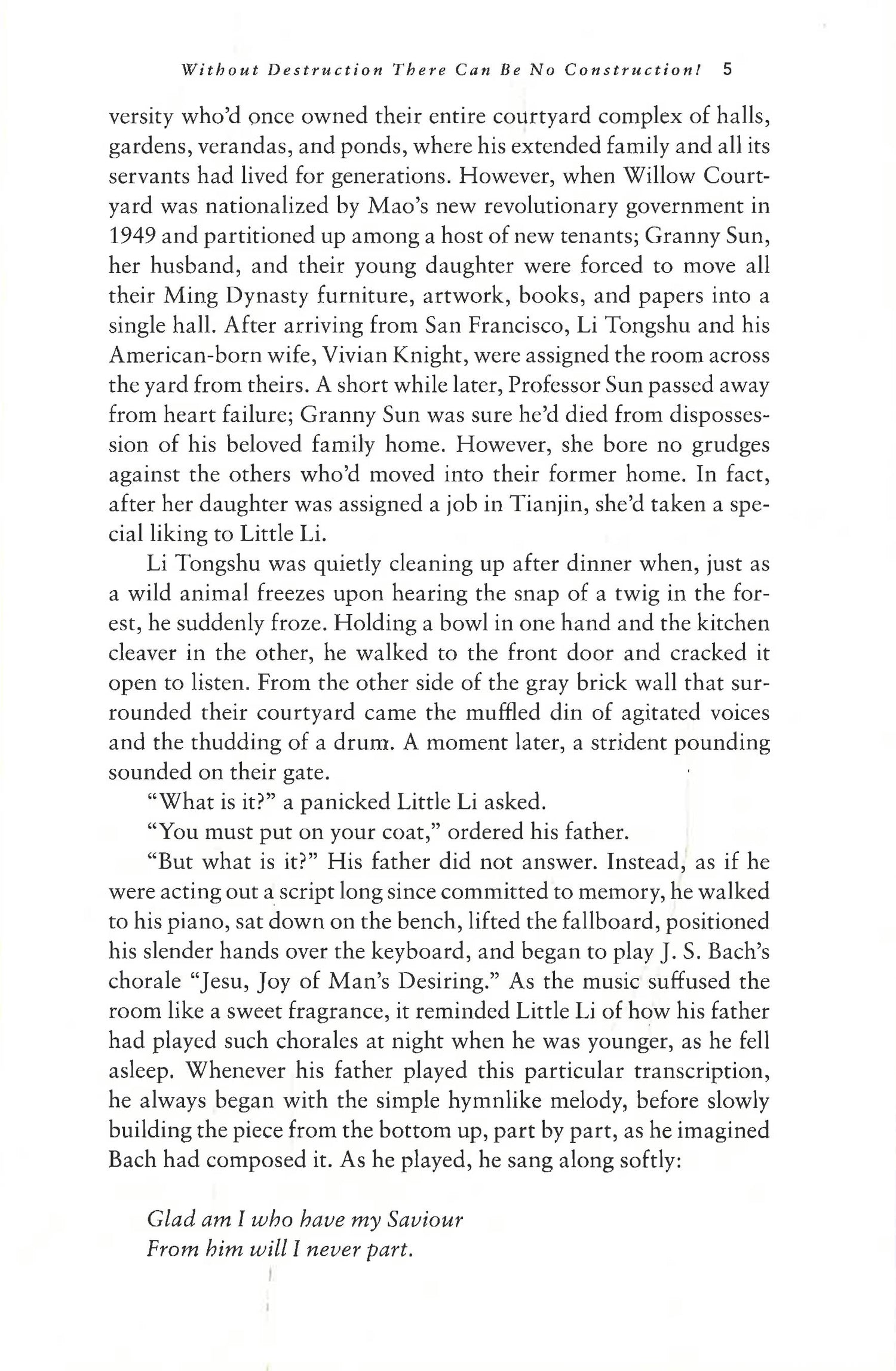 It’s 1950, and pianist Li Tongshu is one of the few Chinese to have graduated from the San Francisco Conservatory of Music. Engaged to a Chinese-American violinist who is the daughter of a missionary father and a Shanghai-born mother, Li Tongshu is drawn not just by Mao’s grand promise to “build a new China” but also by the enthusiasm of many other Chinese artists and scientists living abroad, who take hope in Mao’s promise of a rejuvenated China. And so when the recently established Central Conservatory of Music in Beijing offers Li Tongshu a teaching position, he leaves San Francisco and returns home with his new wife.
