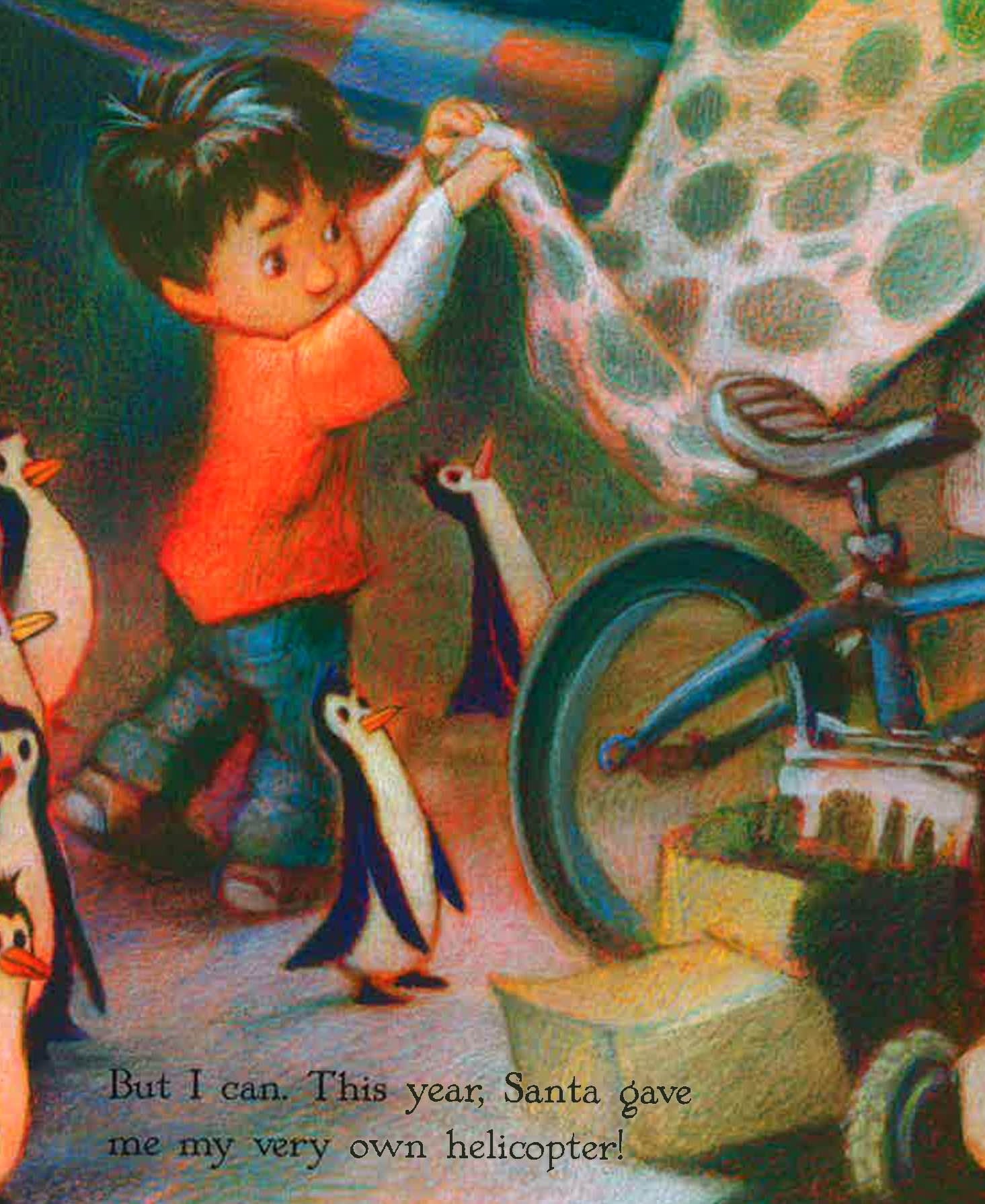 Joe couldn't be more surprised to find his friend Osbert knocking at his front door - AWOL from the zoo - with an invitation to a South Pole extravaganza under his wing. Since penguins can't fly, and Joe has a helicopter from Santa, the boy is soon piloting a bunch of penguins on a long journey south. But when Osbert ignores the southern lights and only has eyes for a penguin named Aurora, Joe starts to worry. Will he ever get back in time for his own family's Midwinter Bash?