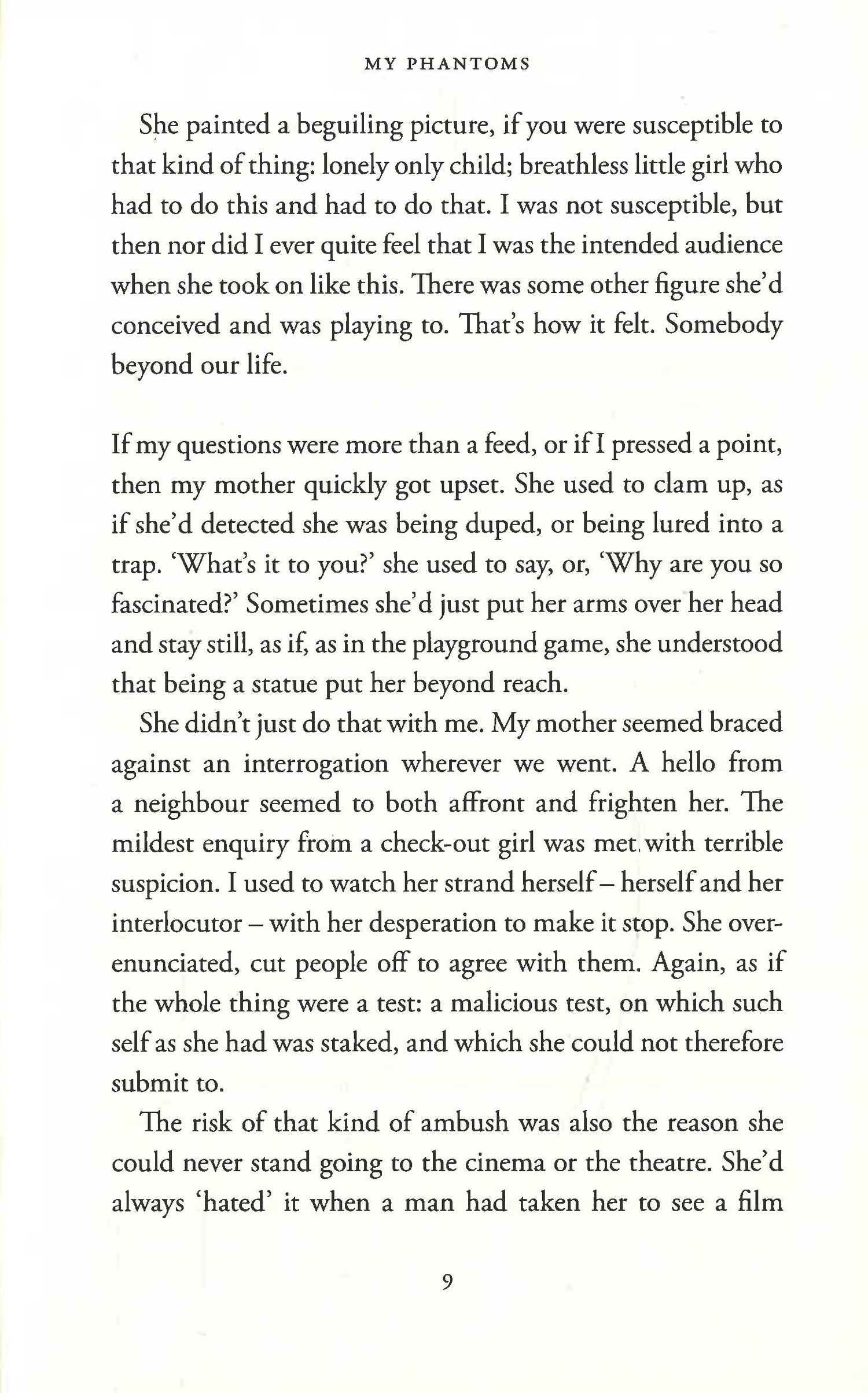 Helen Grant is a mystery to her daughter. An extrovert with few friends who has sought intimacy in the wrong places; a twice-divorced mother-of-two now living alone surrounded by her memories, Helen (known to her acquaintances as 'Hen') has always haunted Bridget. Now, Bridget is an academic in her forties. She sees Helen once a year, and considers the problem to be contained. As she looks back on their tumultuous relationship - the performances and small deceptions - she tries to reckon with the cruelties inflicted on both sides. But when Helen makes it clear that she wants more, it seems an old struggle will have to be replayed. From the prize-winning author of First Love, My Phantoms is a bold, heart-stopping portrayal of a failed familial bond, which brings humour, subtlety and new life to the difficult terrain of mothers and daughters.