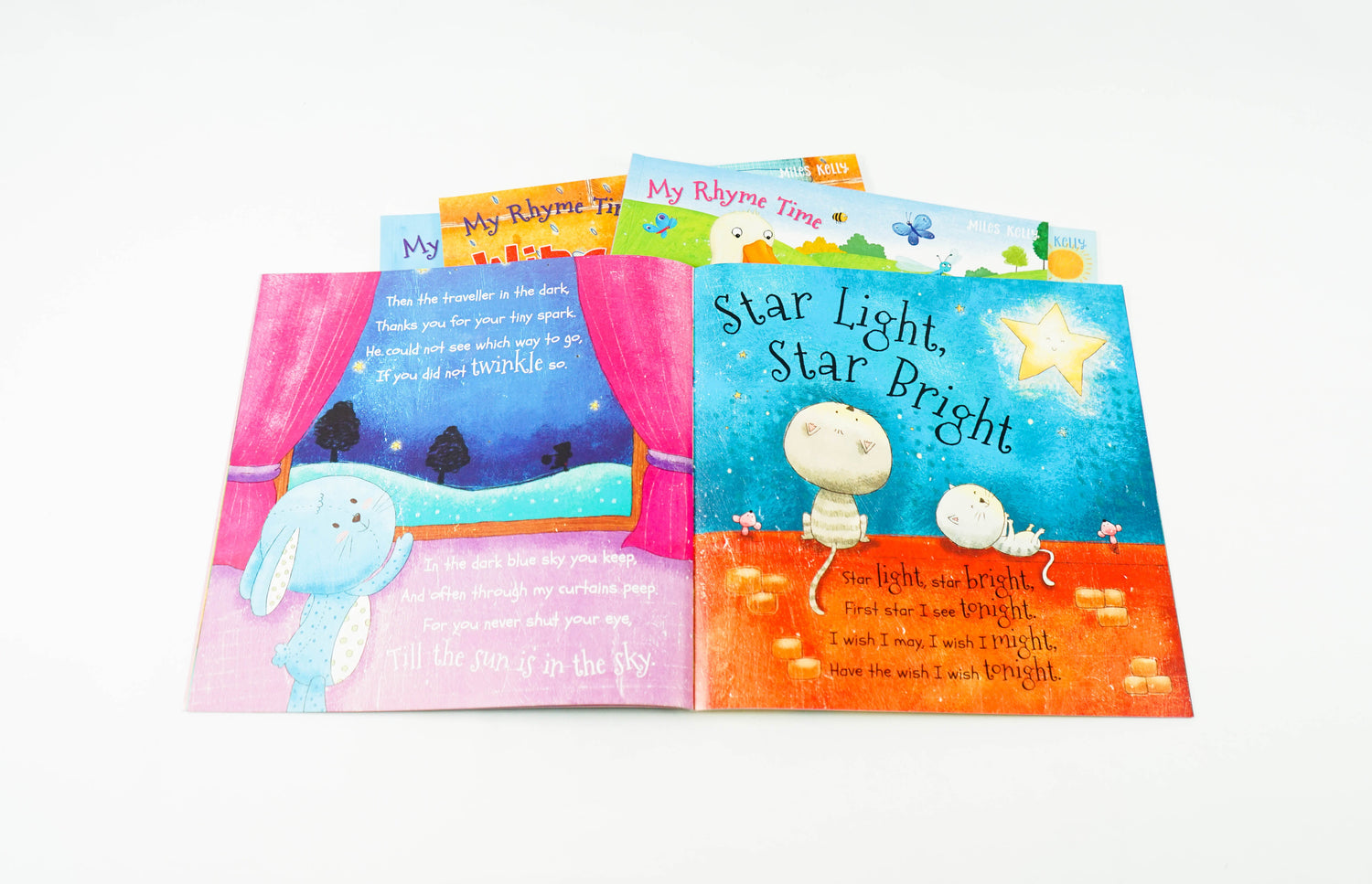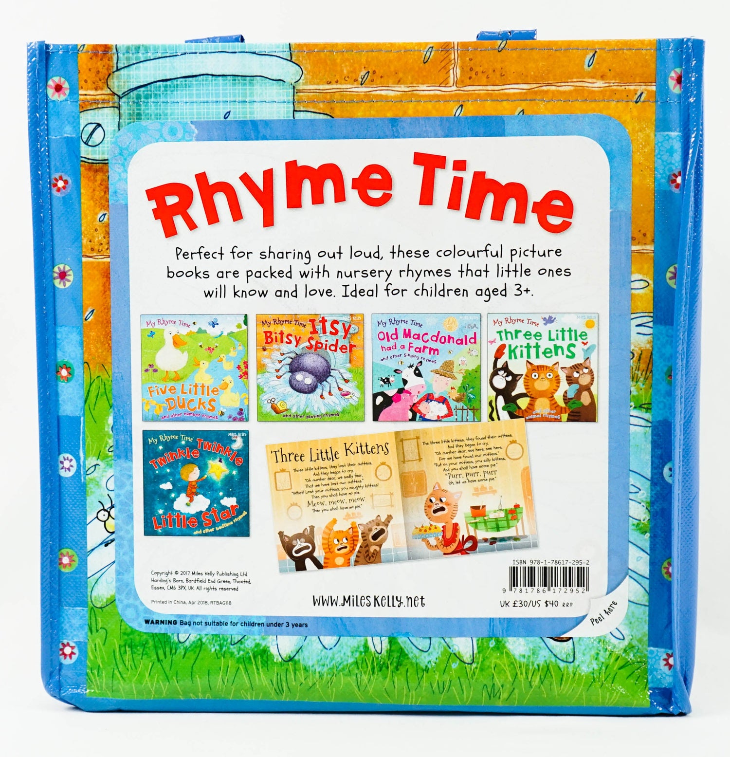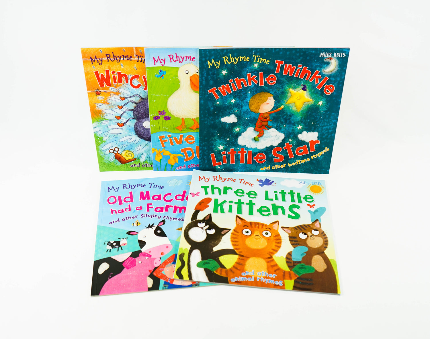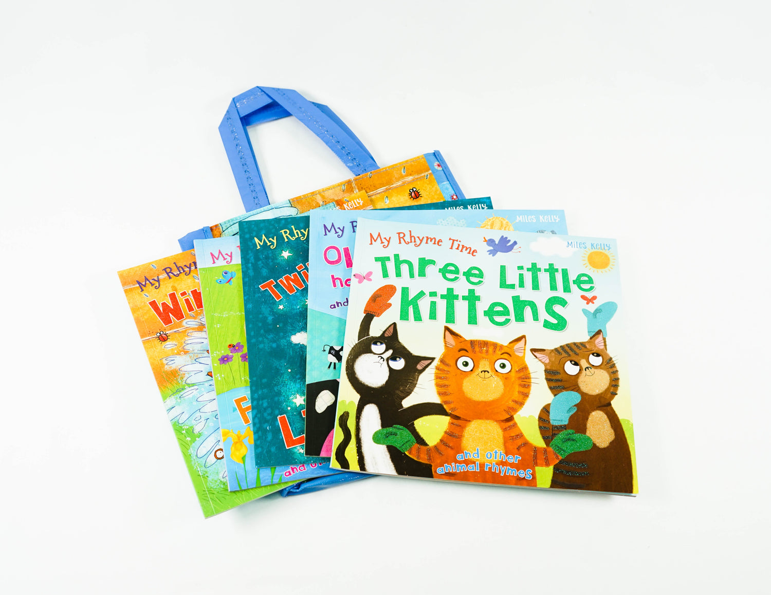 Each book inside My Rhyme Time Collection Bag focuses on a different theme and features nursery rhymes centred around this theme. These include counting, playing, singing, bedtime and animal rhymes. Each book has brightly coloured illustrations to bring the nursery rhymes to life while simple text stands out to encourage children to read along and learn the rhyme. Books included: Five Little Ducks and other number rhymes, Incy Wincy Spider and other playing rhymes, Old Macdonald had a Farm and other singing rhymes, Twinkle Twinkle Little Star and other bedtime rhymes, and Three Little Kittens and other animal rhymes.