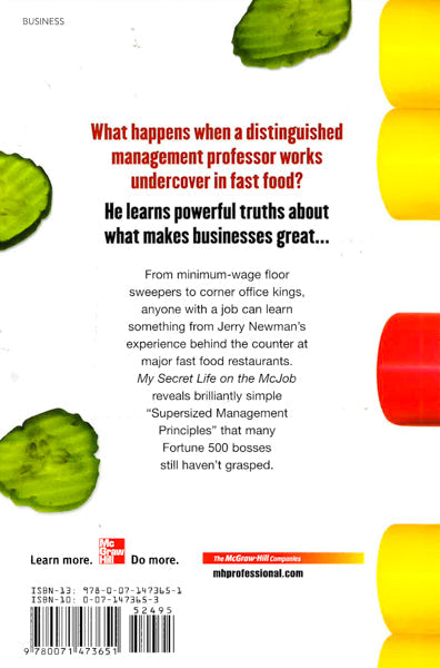 Once upon a time, a Ph.D. went to work at Mickey D's...And what he found was illuminating. Jerry Newman, a college professor who has taught business courses for nearly 30 years, went undercover as a bottom-rung worker for the biggest names in fast food, including McDonald's and Burger King. Newman found that fast-food chains were the perfect petri dishes for covert research: High-pressure, high-volume businesses with high-employee turnover. The pecking order was also crystal clear, from fry cook all the way up to store manager.Of the seven restaurants where Newman worked, some were high-morale, high-productivity machines. Others were miserable, misplaced circles of hell. Yet one common trait stuck out from them all: Each restaurant's respective manager determined the climate of the work environment.Go behind the fast food counter with Newman and see what happens on an average day on the "McJob"...how the restaurants are run (for better or worse) how managers reward good employees when raises are impossible (believe it or not, bosses give 'em more hours-and it works!) how morale and motivation spring directly from the manager's officeand how a few simple adjustments to your own management style-the "Supersized Management Principles" in this book-can transform and invigorate your workplace
