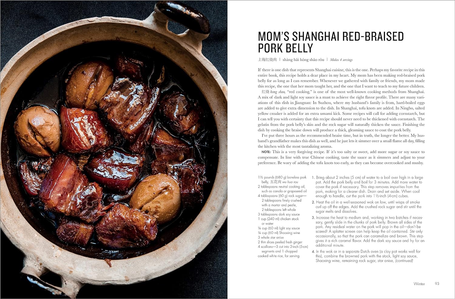 Chinese food is rarely associated with seasonality. Yet as Liu reveals, the way the Shanghainese interact with the seasons is the essence of their cooking: what is on a dinner table is dictated by what is available in the surrounding waters and fields. Live seafood, fresh meat, and ripe vegetables and fruits are used in harmony with spices to create a variety of refined dishes all through the year.