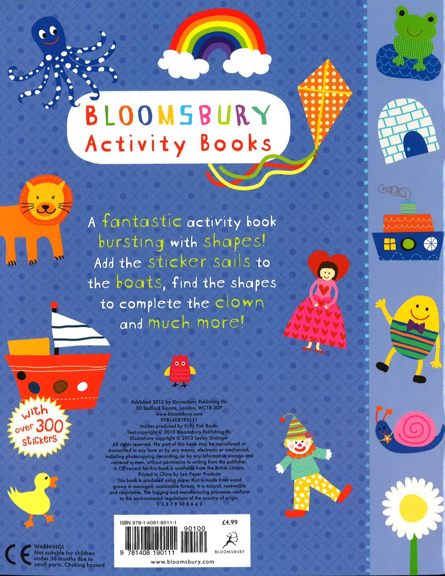 Can you find the triangles to complete the clown? What shape is the sun? And many more. Learn all about shapes with this fantastic activity book! Bloomsbury Activity Books provide hours of colouring, doodling, stickering and activity fun for boys and girls alike. Every book includes enchanting, bright and beautiful illustrations which children and parents will find very hard to resist. Perfect for providing entertainment at home or on the move!