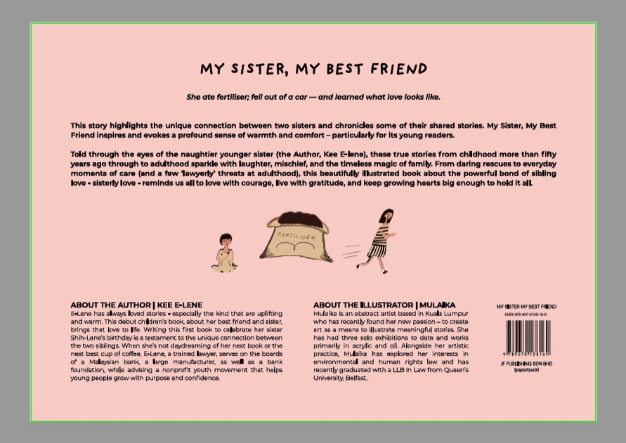Told through the eyes of the naughtier younger sister (the Author, Kee E-lene), these true stories from childhood more than fifty years ago through to adulthood sparkle with laughter, mischief, and the timeless magic of family. From daring rescues to everyday moments of care (and a few 'lawyerly' threats at adulthood), this beautifully illustrated book about the powerful bond of sibling love - sisterly love - reminds us all to love with courage, live with gratitude, and keep growing hearts big enough to hold it all.