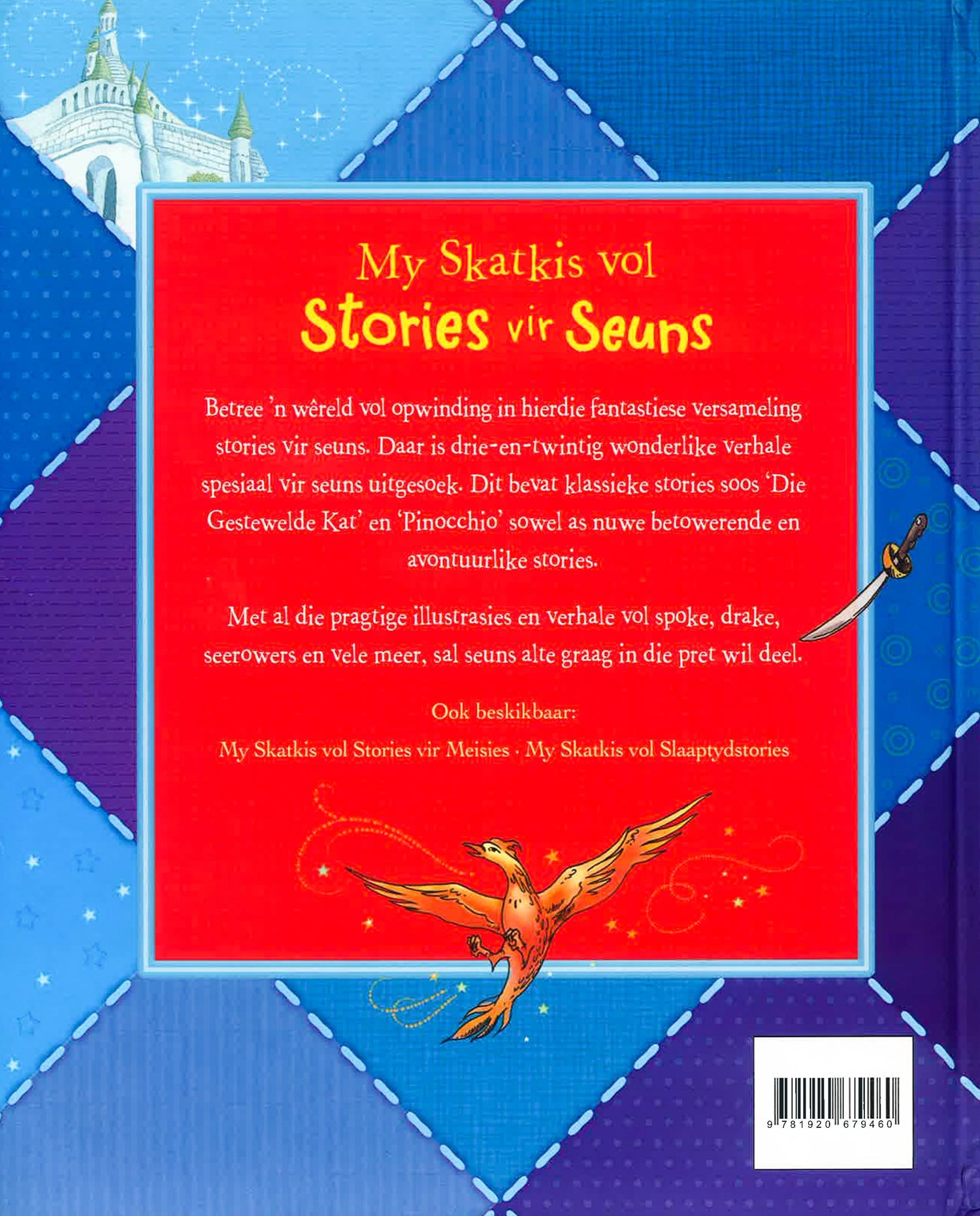 Betree 'n wereld vol opwinding in hierdie fantastiese versameling stories vir seuns. Daar is drie-en-twintig wonderlike verhale spesiaal vir Seuns uitgesoek. Dit bevat klassieke stories soos Gestewelde Kat en Pinocchio sowel as nuwe betowerede en avontuurlike stories.